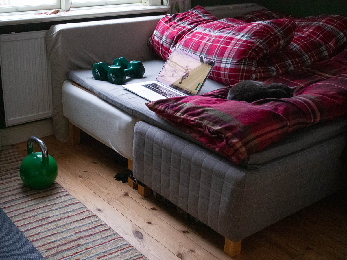 On the outside: two magnets to identify the locker as mine. One with a fun photo taken when I joined tretton37; one a quick chain-stitched embroidered patch.
