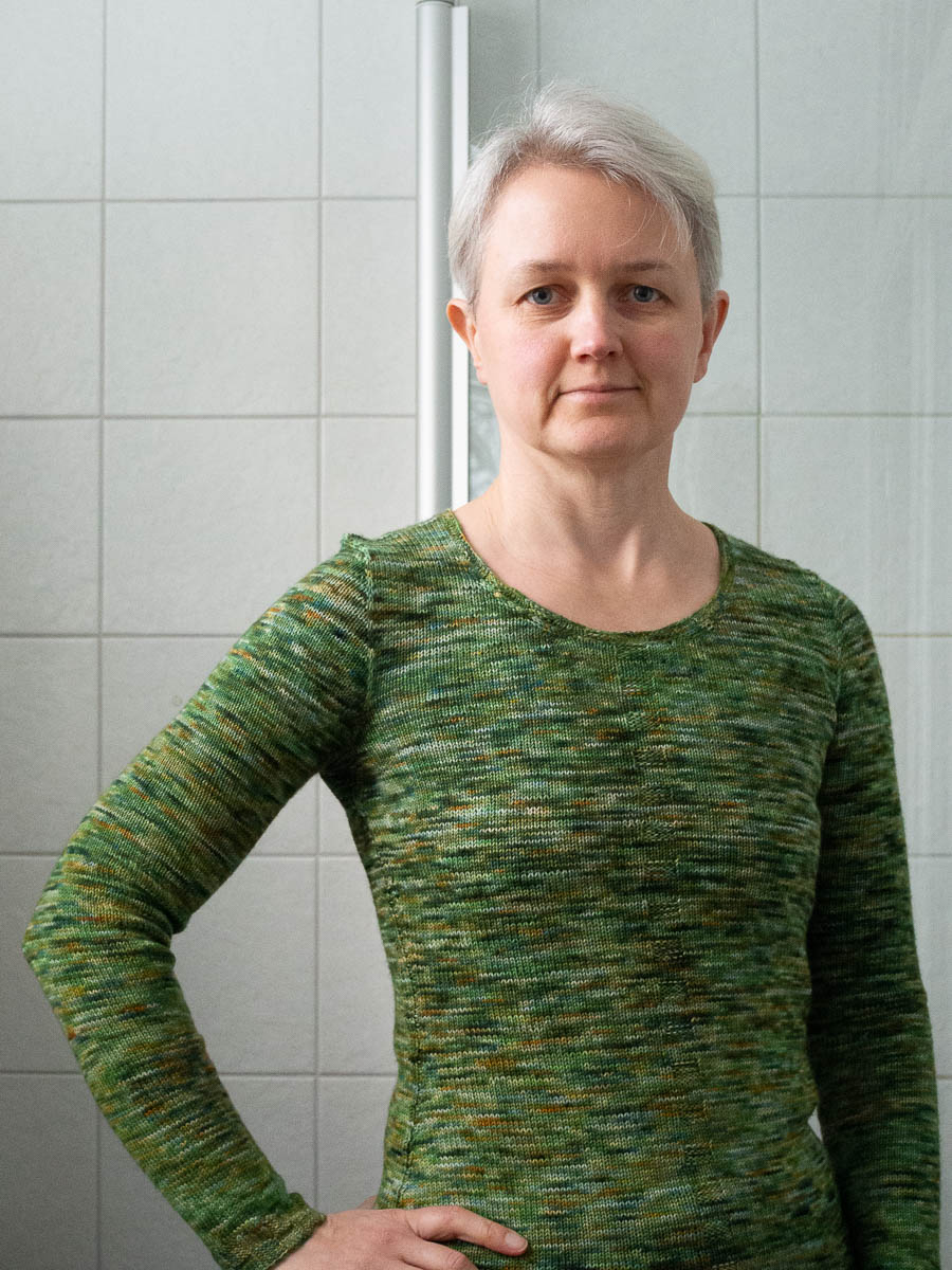 The yarn I bought Apmezga, a Lithuanian seller, at the Stockholm Sewing Fair this autumn. It’s a merino wool and nylon blend, and it’s as soft as a cloud. The sweater feels like a second skin. Except warmer.