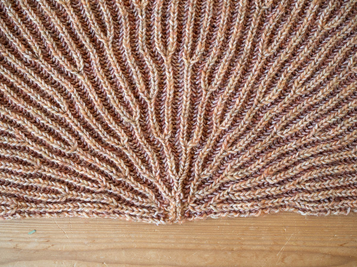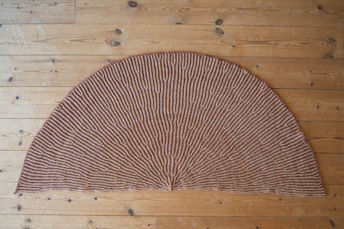 This one was lovely to knit. The yarn was super soft and cosy, and the pattern was interesting. Simply brioche knitting all the way, with two increases on every right-side row, randomly placed. Not too much thinking, but also not completely mindless. Perfect for commuting, meetings, watching TV etc.
