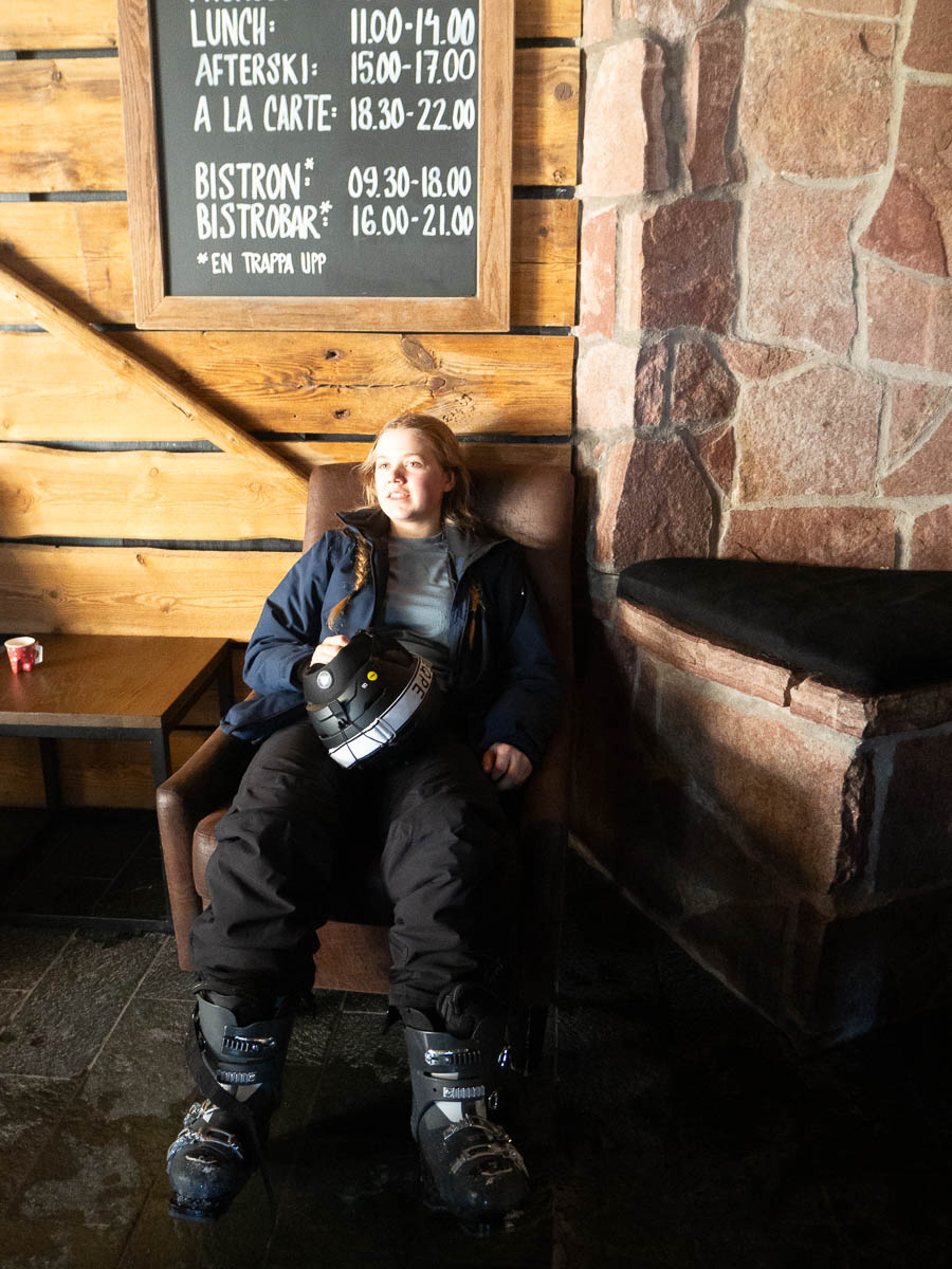 One thing we re-learned yesterday is that about 90% of all Swedes head for lunch just after noon. It’s almost like a law of nature. Water flows downhill, fire is hot, lunch is at twelve. Making use of that knowledge, we made sure to be out on the slopes between twelve and half past one, to make the most of the empty slopes and the almost non-existent lift queues. Skiing is best with no other people around.