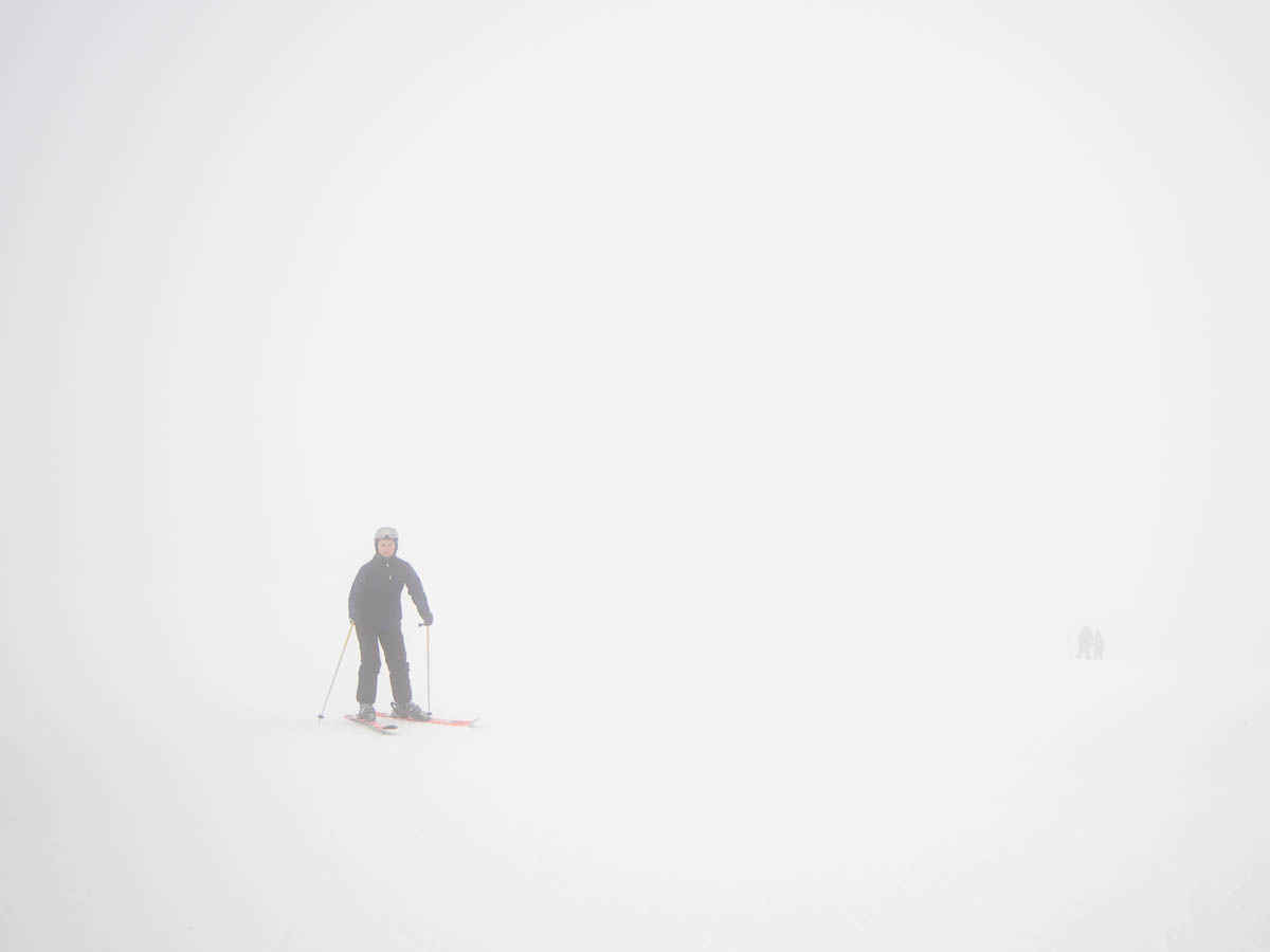 Our ski passes and ski rental are valid for another day, and we could have gotten another good four of five hours of skiing in. But the weather is getting worse rather than better – even windier, even wetter – and it really isn’t looking the least bit tempting, so we’re packing up and driving home instead.