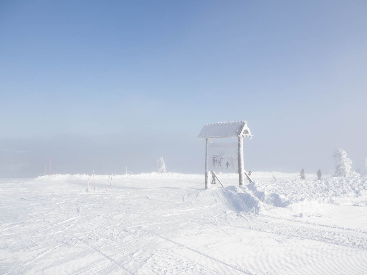 The weather was no better today than before. Still windy and with low clouds and lousy visibility at the top. Around lunchtime we got some sleet, and while that stopped for a while, it later came back as almost-rain.