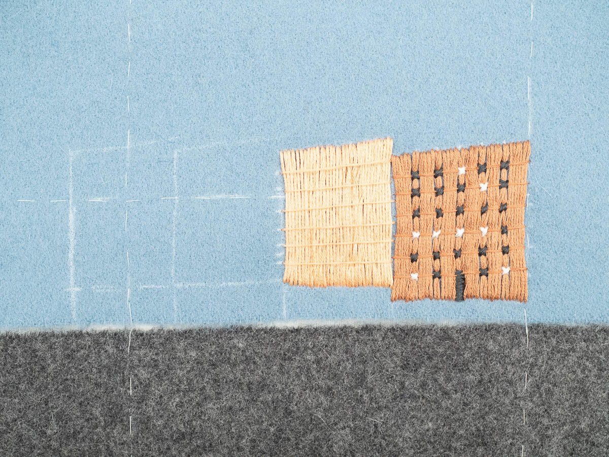 I’m using Bayeux stitch to fill all that space for the houses. I learned that stitch here at the embroidery club, and I really don’t know what I would have done here instead if I didn’t know this one. It fits so perfectly.