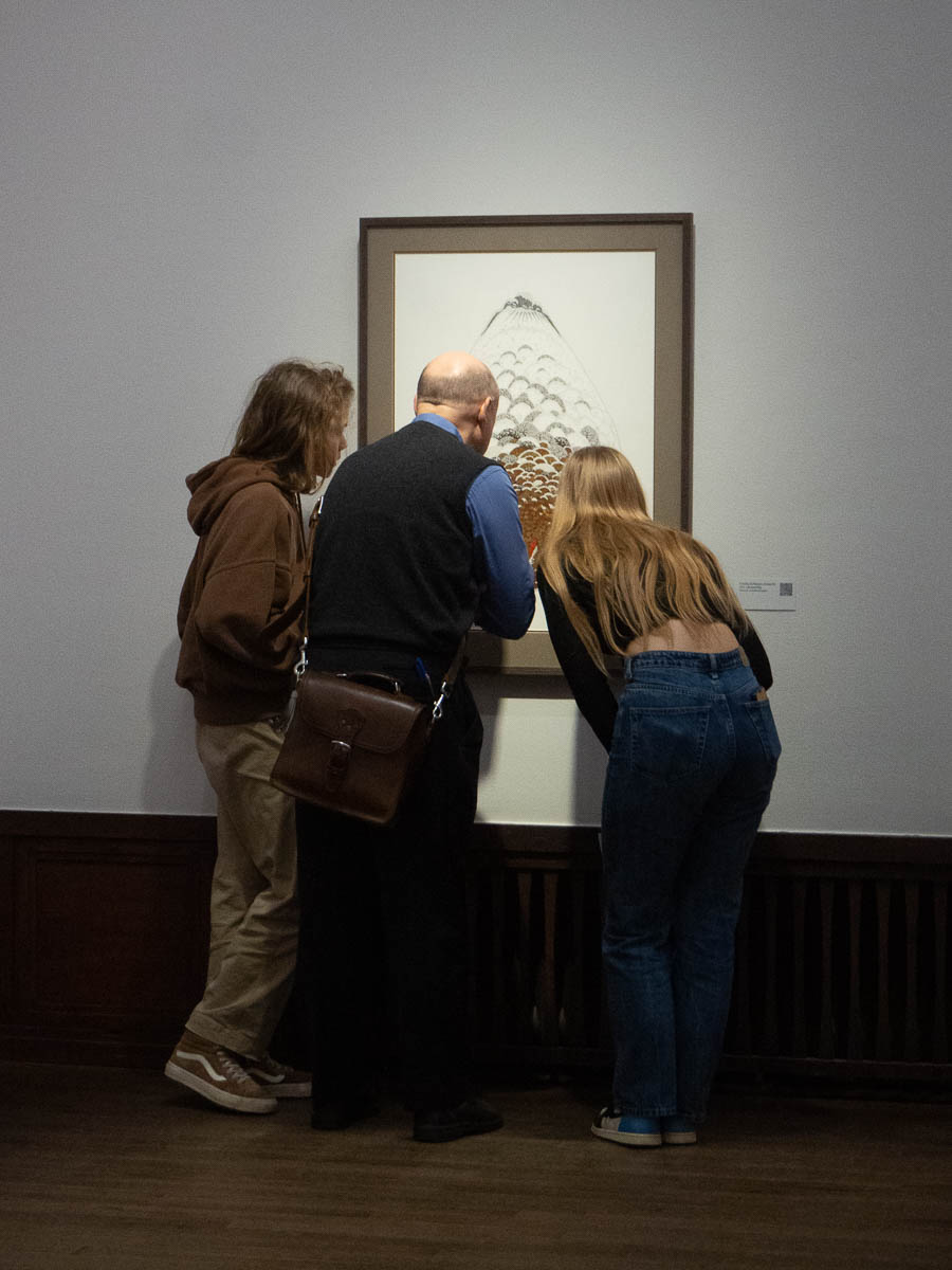 This intricate drawing/painting of ptarmigan – where the feather patterns hide everything from miniature lemmings to snowflakes – captured our attention.