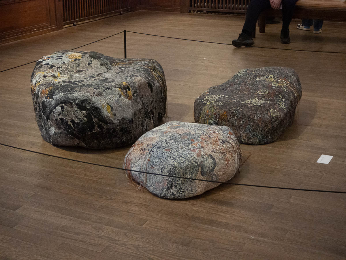 These rocks were my favourites: from a distance they just look like lichen-covered rocks, but up close you can see that it’s all woven tapestry and embroidery. Soft pretending to be hard.