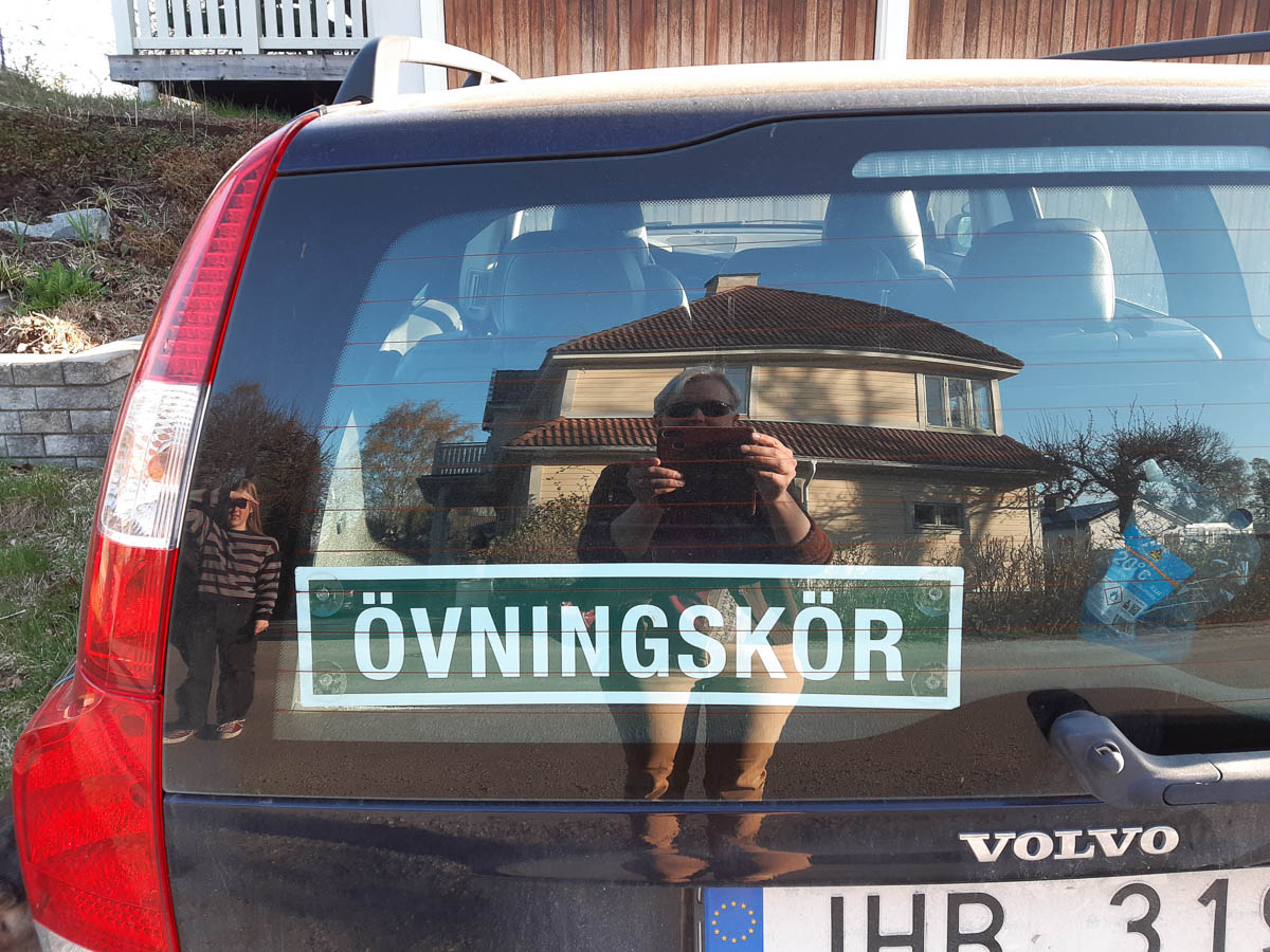 Ingrid has been practising driving, off and on since autumn. Started on a parking lot with stopping, starting, basic manoeuvering and shifting gears; then moved on to an industrial area that was mostly abandoned during weekends. Today we went out into actual traffic and drove first to Vällingby and back, and then to Råcksta and back. Both times on roads that Ingrid is well familiar with from all her moped trips. The moped driving has been a very practical way of warming up to driving a car – she’s used to traffic, speed limits and all that, and all she needs to get used to now is handling the car.