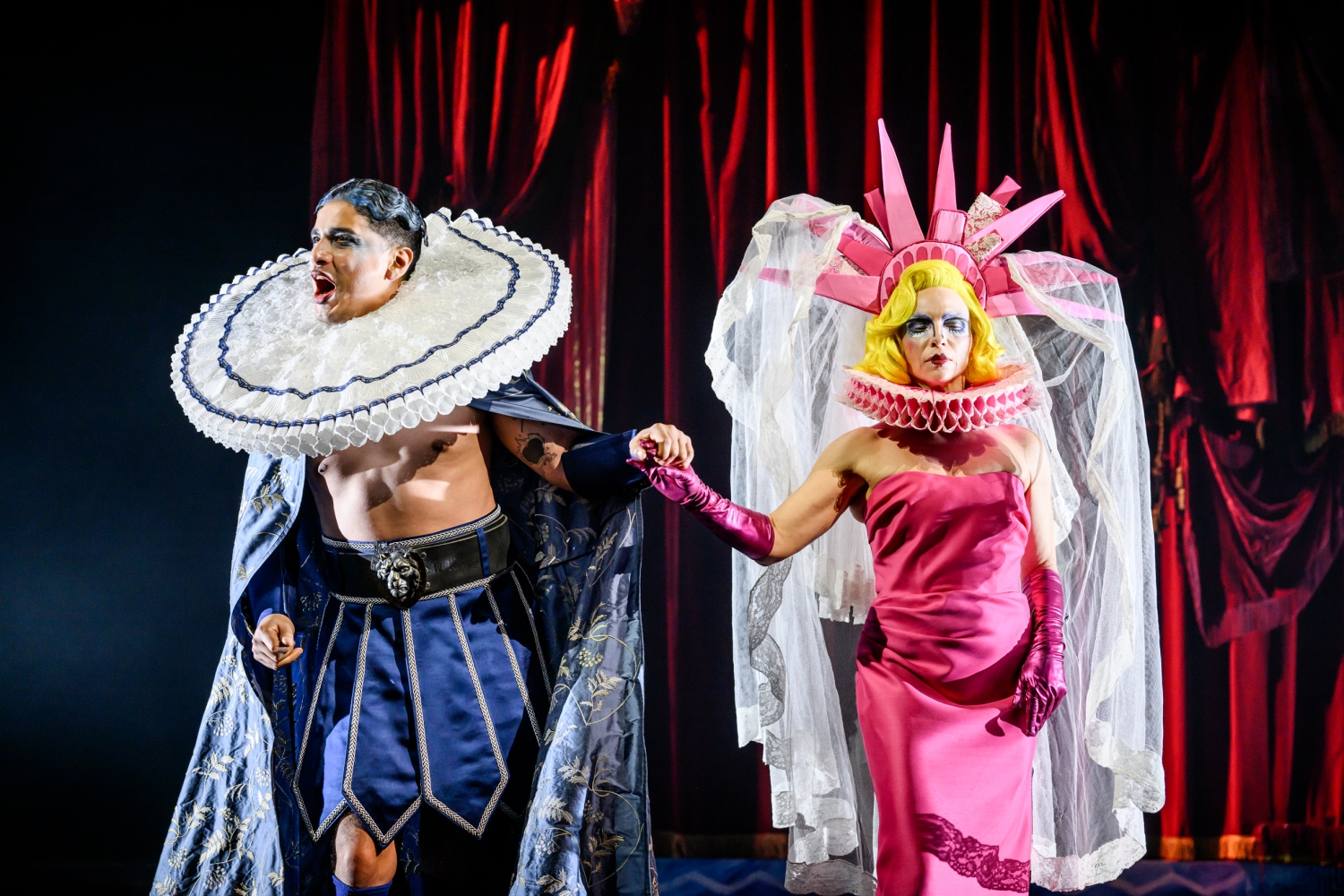 I will remember the wonderfully zany costumes. A bizarre mixture of fashion from Shakespeare’s era (ruff collars and puffy knee-length trousers) and Greek-themed decorations. Lysander and Demetrius wore sweatshirts, one a souvenir shirt from Athens and the other with University of Athens branding. Exaggerated face paintings reminded me of the masks used in Greek tragedies.
