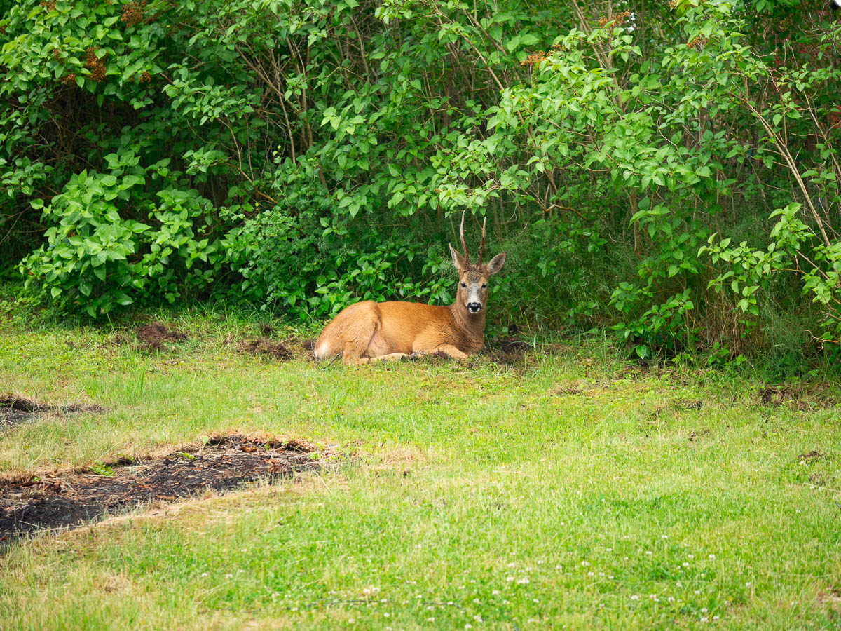 A very heavily pregnant deer stopped to rest in our lilac hedge. I was wondering if she would stay here to give birth, and we’d get a deer nursery again, but a few hours later she was gone.