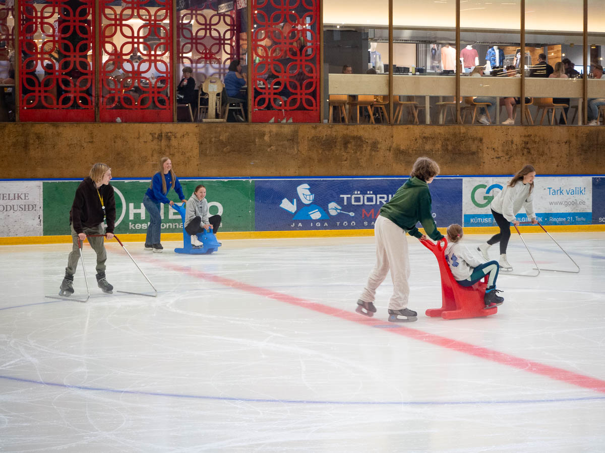 From ice skating at an indoor arena in Lõunakeskus, which is a nice way to pass time together with friends. Kids skating – with a lot of horseplay and monkeying around – and adults chatting.