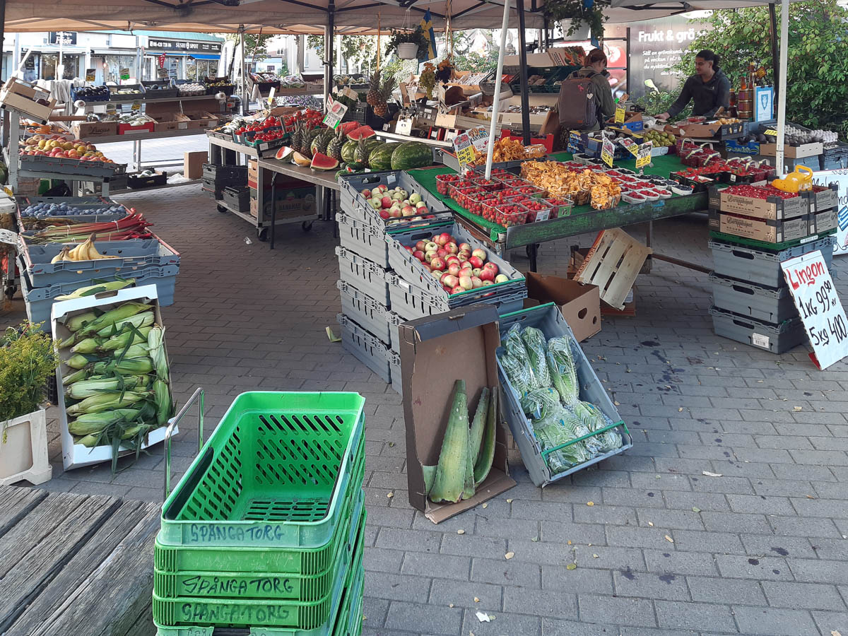 The vegetable stand at SpĂ„nga Torg is my source for fun fruit and vegetables. Right now the best thing is plums and mangoes. They have five or six kinds of plums, where ICA might at best have two. And some are clearly relatively local, and sourced from a small-scale grower: they are so tender when ripe that they can’t have been grown with long transport in mind.