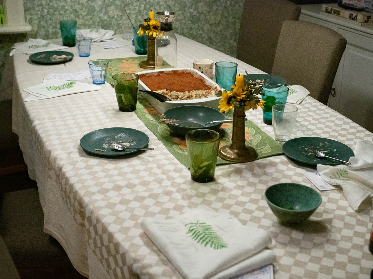 Preparing and cooking a three-course meal for six people, including also shopping and decorations, is a full-day project. Ingrid was rather exhausted by the end. I do hope her friends realize what a treasure they have and appreciate her efforts properly.
