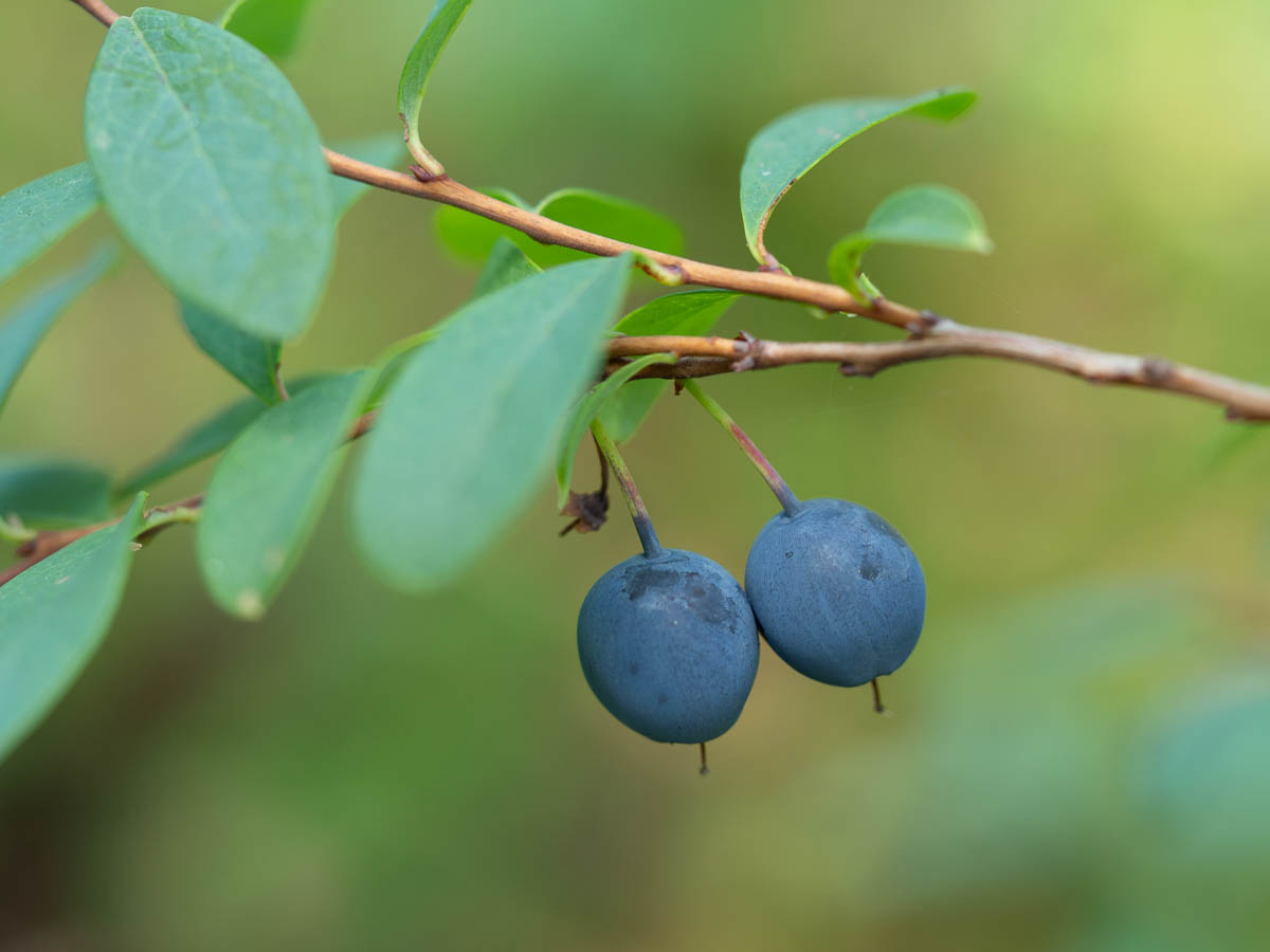 Bog bilberries look less appealing. The bushes are sparse and have an air of scragglyness. The berries hang singly or by twos at most, and the colour is muted, so they look underwhelming on the whole. It takes effort to make them look good in a photo.