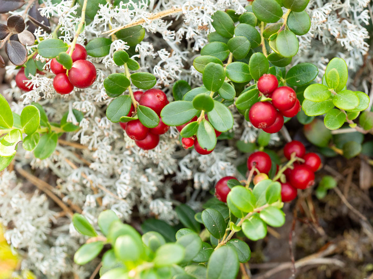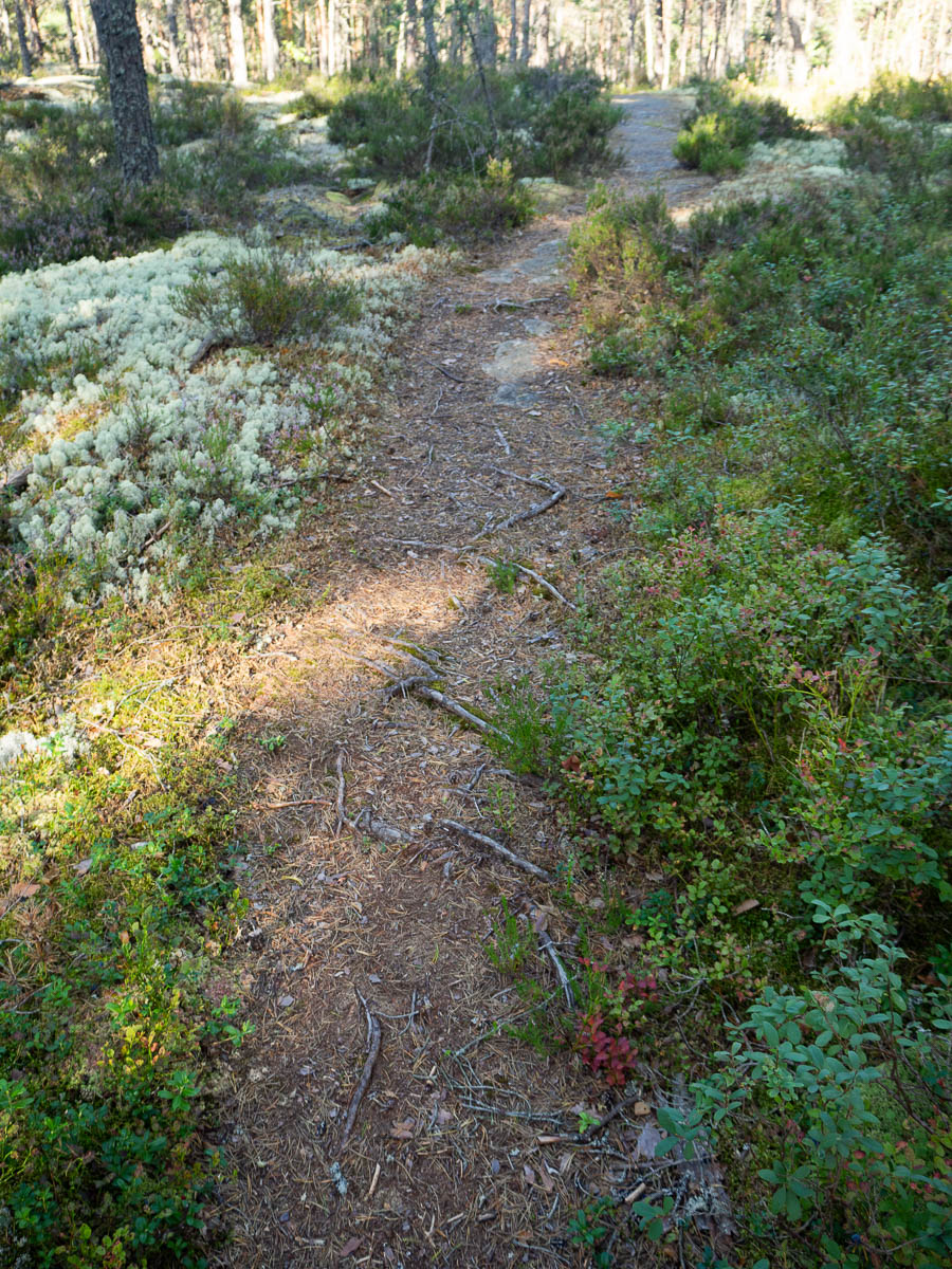 Taste. It’s berry season! Lingonberries and bilberries and bog bilberries are all ripe and plentiful. I was extra happy when I found bog bilberries, not only because I like their flavour but also because the bushes are taller and the berries thus easier to pick without bending down (which can be awkward with a heavy pack).