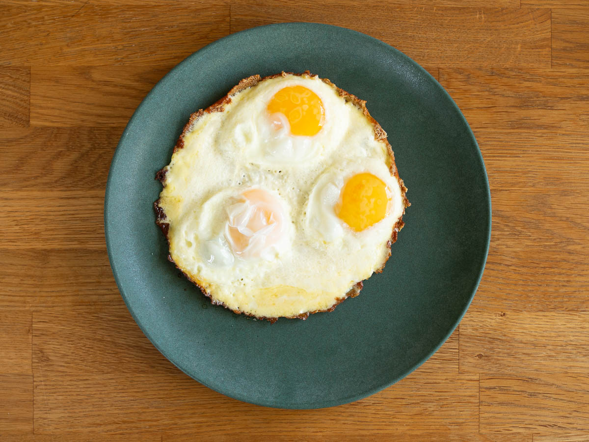 The first bite tasted just like normal fried eggs. That’s because it was just the eggs. The second bite had a fair bit of the reduced, caramelized cream, and was delicious.