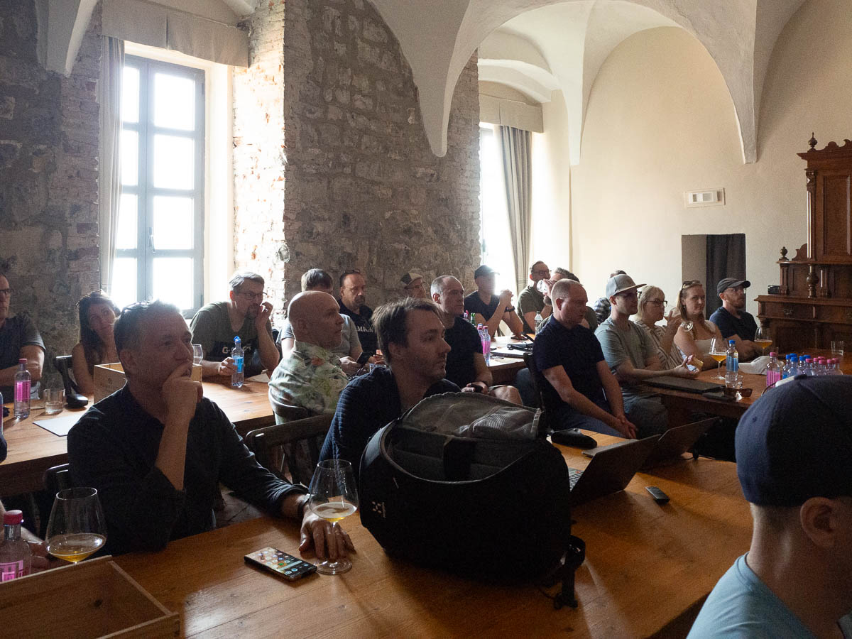 Here’s us, listening to a talk about new features in the latest versions of .NET, in a vaulted renaissance hall.