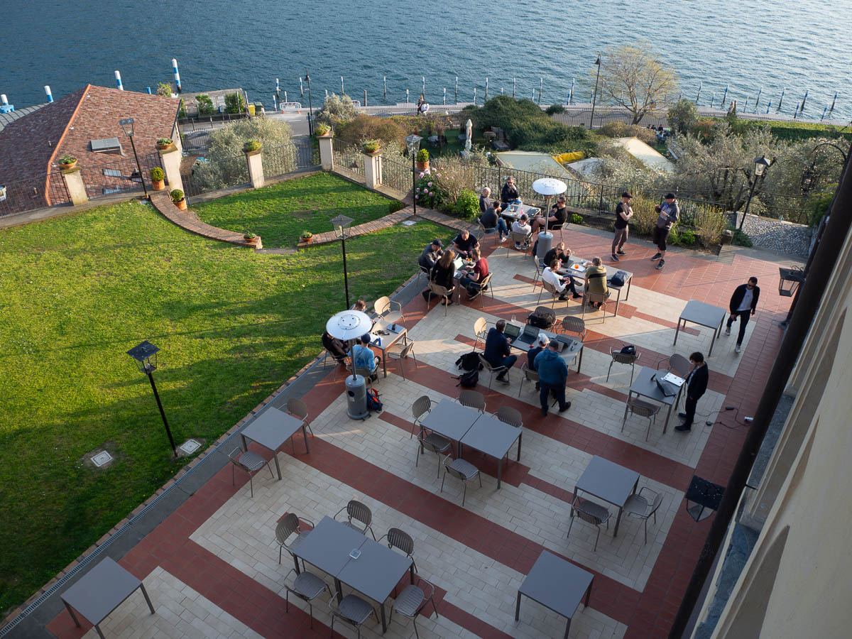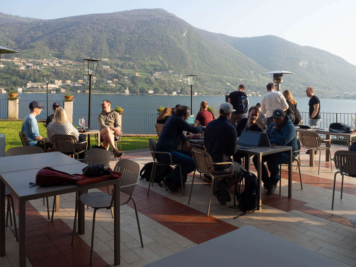 After the talk, we had collaborative coding sessions. Most teams opted to sit out on the terrace. Quite a difference to the +3°C and light snow we left behind us in Stockholm.