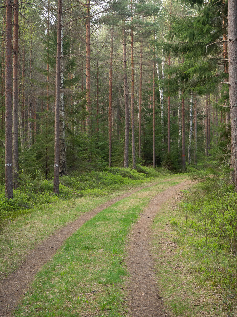 From the shelter south of Skogasjön on stage 27, to Katrineholm train station along connecting stage 27:1. 10 km. Walking as far as my feet took me every day left me with less walking for today than I had vaguely envisioned.