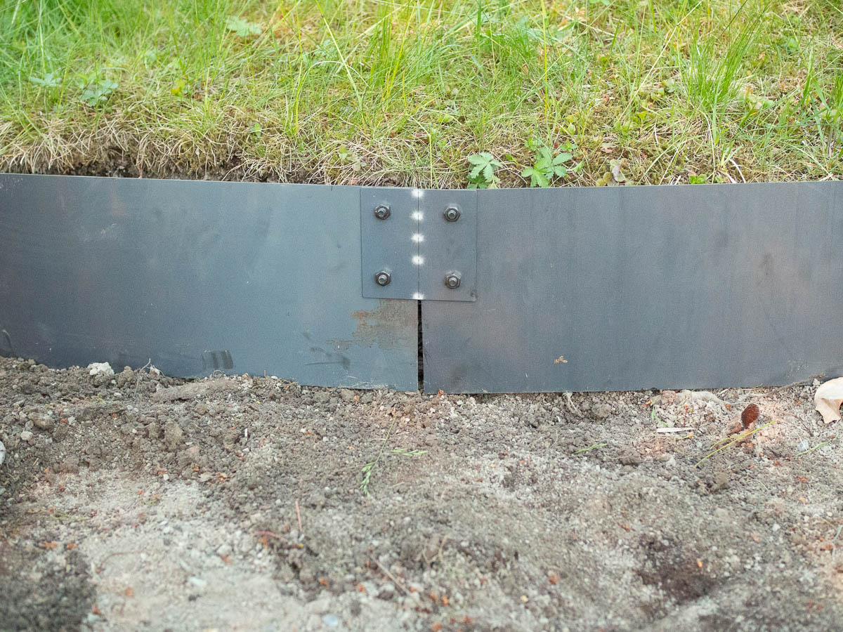 Now that the old planting boxes are gone, and the flat section of the garden is presentable enough to host Ingrid’s graduation party, I’m back working on the planting towards the street. The steel edging has been waiting for me since November. Today I got it in place.