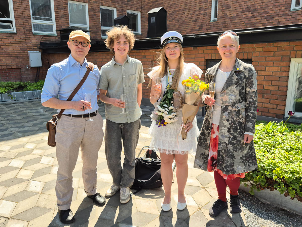 The flak trucks for all the graduating classes took off as a convoy towards the city centre, and the rest of us went home. Ingrid came home a few hours later, completely drenched.