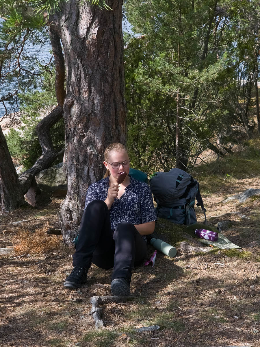 With the short distances, we could buy ourselves ice cream (or rather, Ingrid could) at the cafe at the centre of the island, wrap the ice cream up in a sweater, walk all the way to the south harbour, and enjoy it there while waiting for our boat back to Vaxholm.
