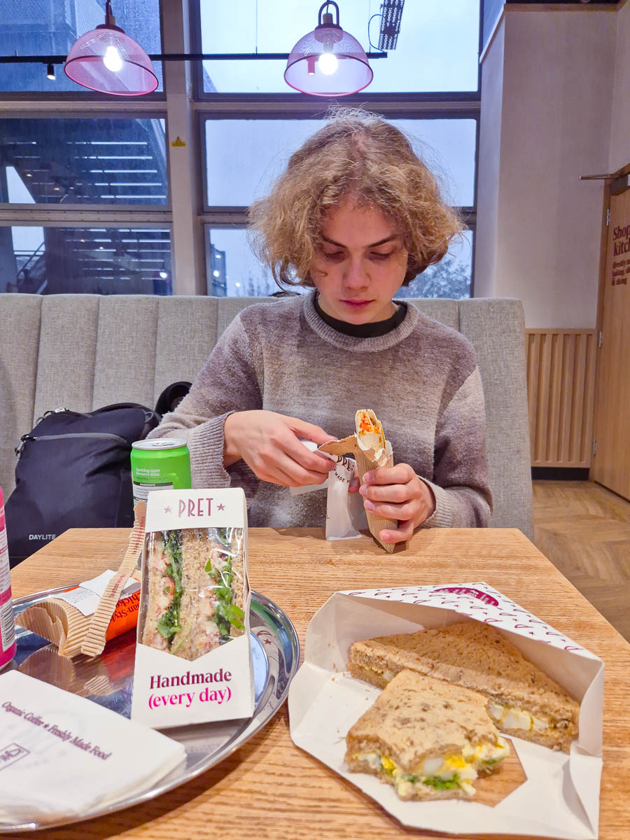This trip was for Adrian’s sake maybe even more than mine (although I do love London) and one of his wishes was to eat typical British food. We had Pret sandwiches for lunch, and ate dinner at an Indian restaurant in East London. (That one was too dim for photos.)