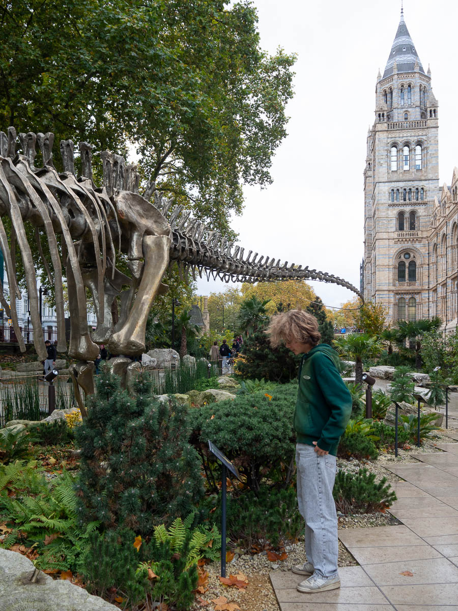 After a browse through the museum shop, we crossed the street to the Natural History Museum. Started with a tour through their garden, with a bronze cast of their famed Diplodocus skeleton (which was apparently technically challenging to make), surrounded with plants similar to what was around during the era of the Diplodocus.
