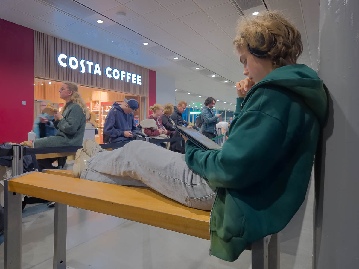 Had breakfast at Grounded again, even though a breakfast buffet was included in our hotel stay. The buffet was just like the hotel itself: clean, tidy, nothing wrong with it, but very much on the budget end of the scale. For a hotel room, I don’t mind that at all. All I want is a clean room in a safe building, with decent beds. The beds and pillows here were actually really good – many more expensive hotels opt for too-soft everything, and this place had nice, firm ones. But a low-budget breakfast, with the cheapest possible sliced bread and sandwich stuff, and only water and coffee to drink, no juice, is not for me. Even the boiled eggs somehow managed to taste really cheap. If the food isn’t appetizing, I struggle to make myself eat.