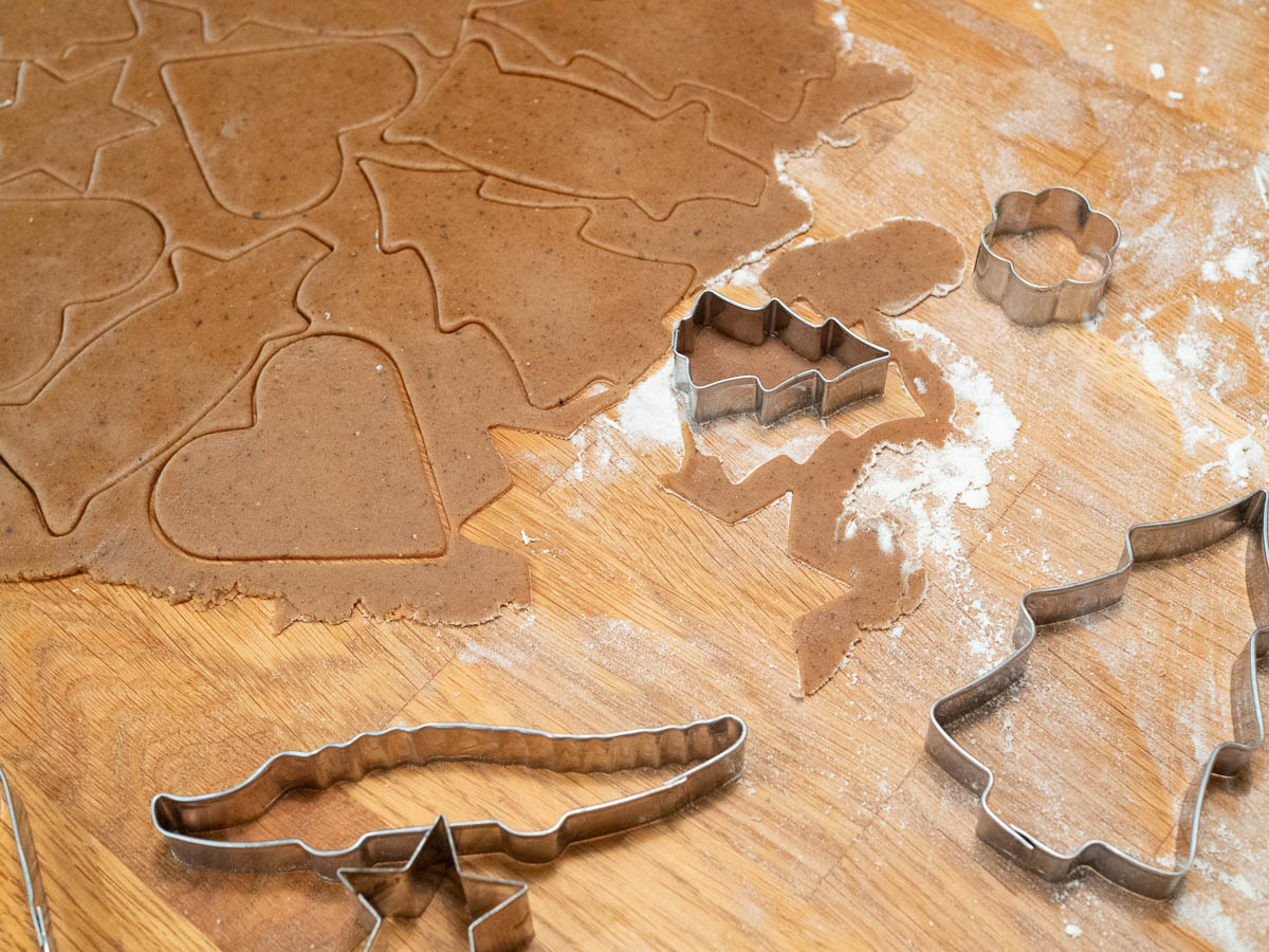 The gingerbread cookie dough was hard to work with at first, but settled down with time. Some sources advise trying to keep the dough cool; our dough worked better when it had time to warm up a bit. The cookies had a lot of flavour but were not quite as crispy as I would want, so the recipe is not yet perfect enough for sharing.