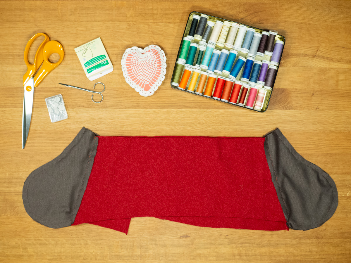 I’m piecing it together from leftover fabric from the red skirt and the brown skirt and some new cream-coloured wool that I bought at the crafts festival last year.