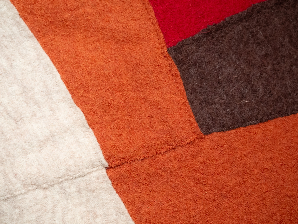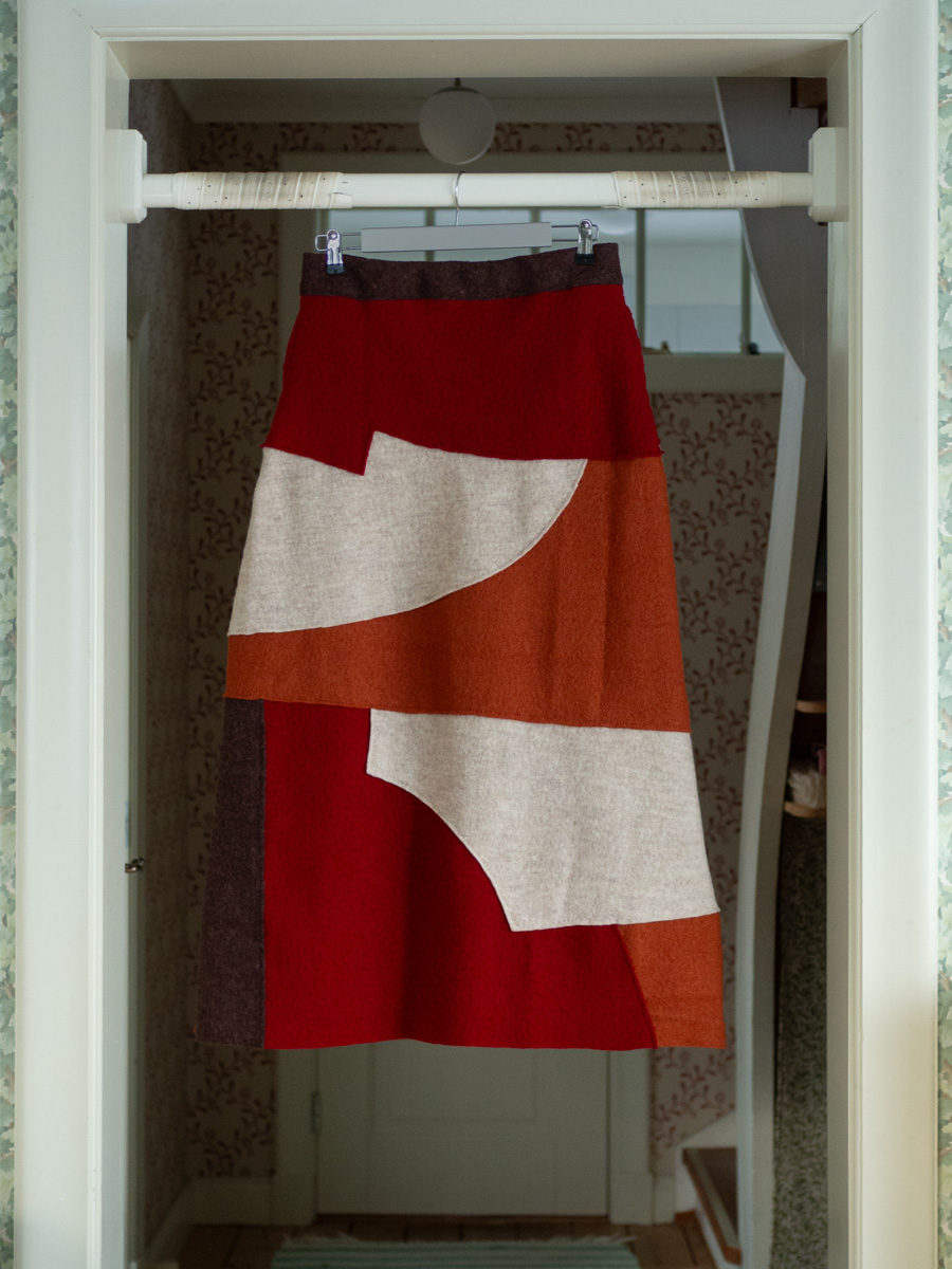 This is kind of what I had in mind for the skirt that I gave up on – an irregular composition of semi-random pieces of fabric. I intentionally let the shape of the fabric pieces guide the design, rather than drawing something and then trying to make the pieces fit.