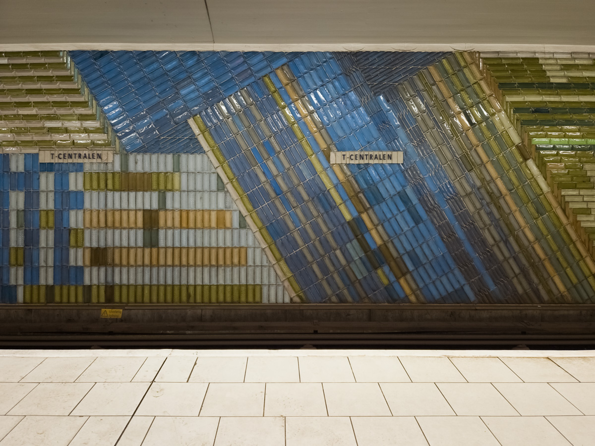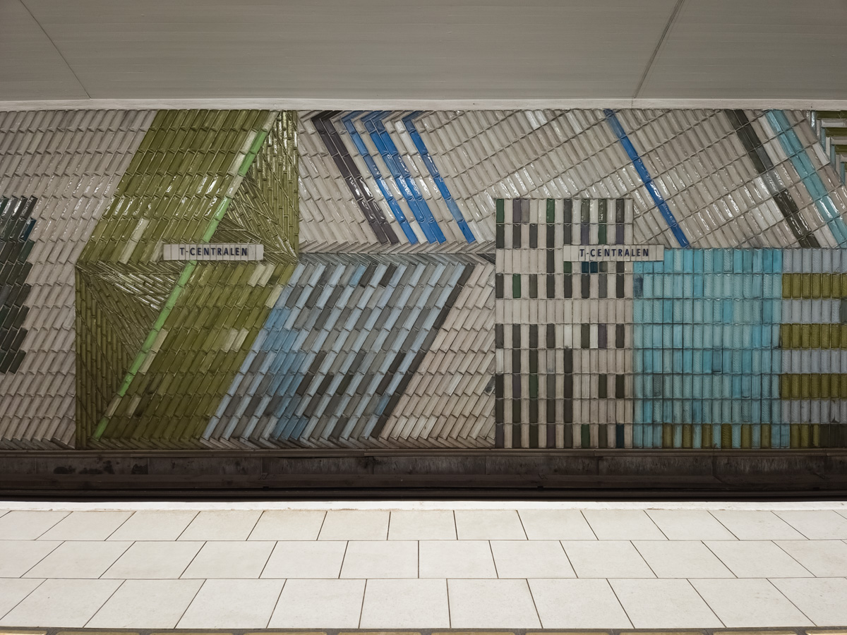 Wall art at the southbound red line platform at the T-centralen station.