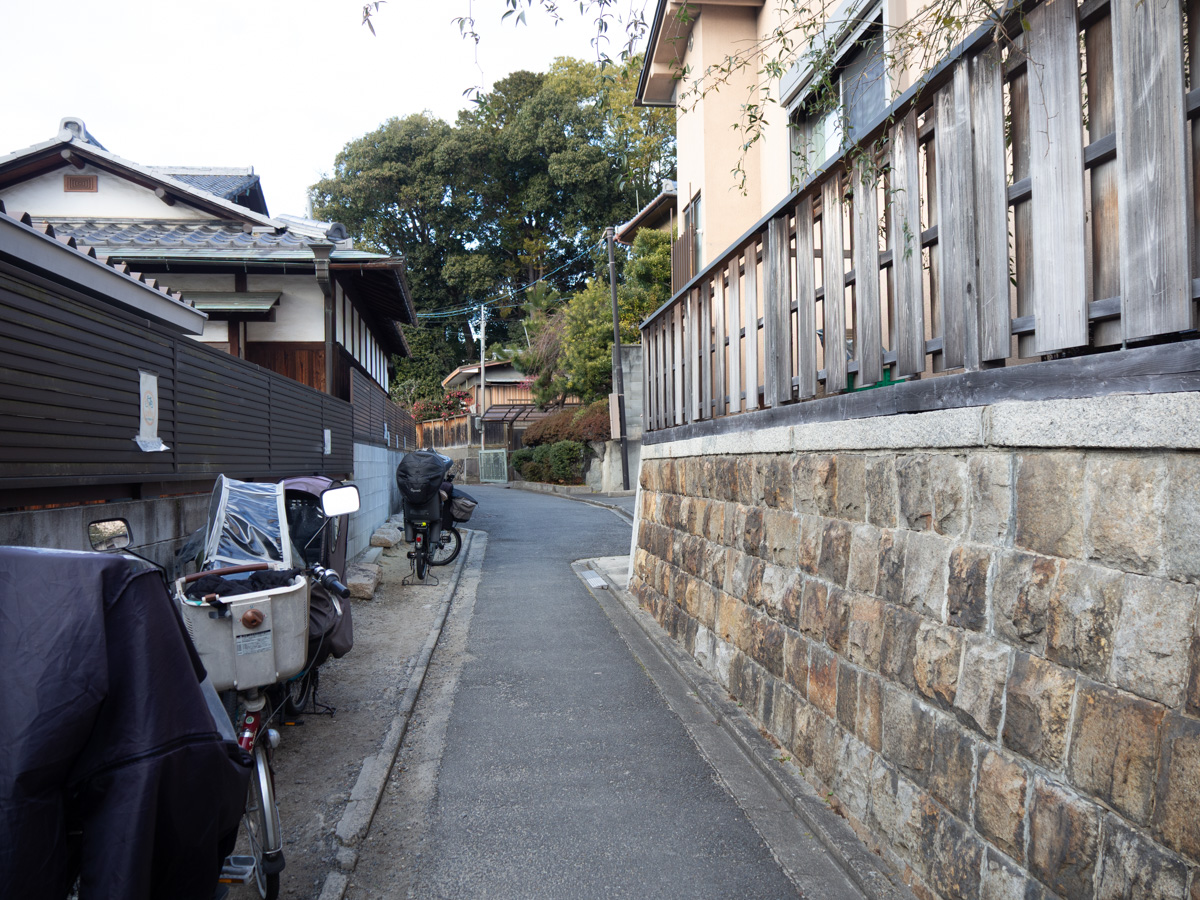 Kyoto immediately feels different from Tokyo. Smaller, greener, hillier streets. More houses in the traditional style.