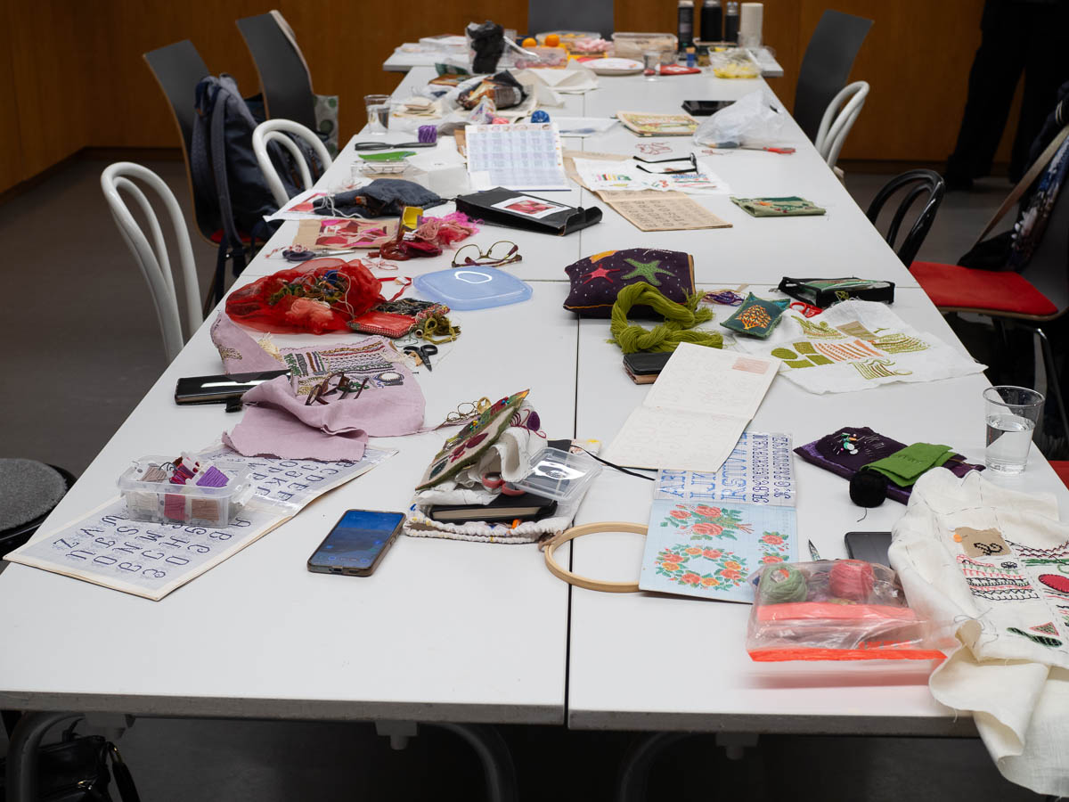 Embroidery club. Theme of the day: marking/signing your work. We’re not done (this is square 6 out of 9) but it is the last time we meet up for this year, so it feels appropriate, somehow.
