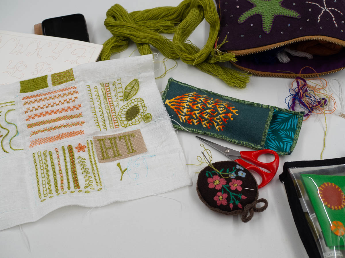 The embroidery club explored blanket stitch. For the first time during these exercises, I ran out of space before I ran out of things to try. Mostly because the organic, lacy blanket stitch (very much inspired by the works of Miriam Gielen) was so much fun that it grew and took up more space than its fair share.