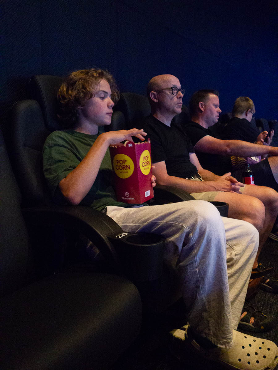 Movie theatre popcorn, by the way, is ridiculously expensive. 75 SEK for that bucket of what is mostly air!