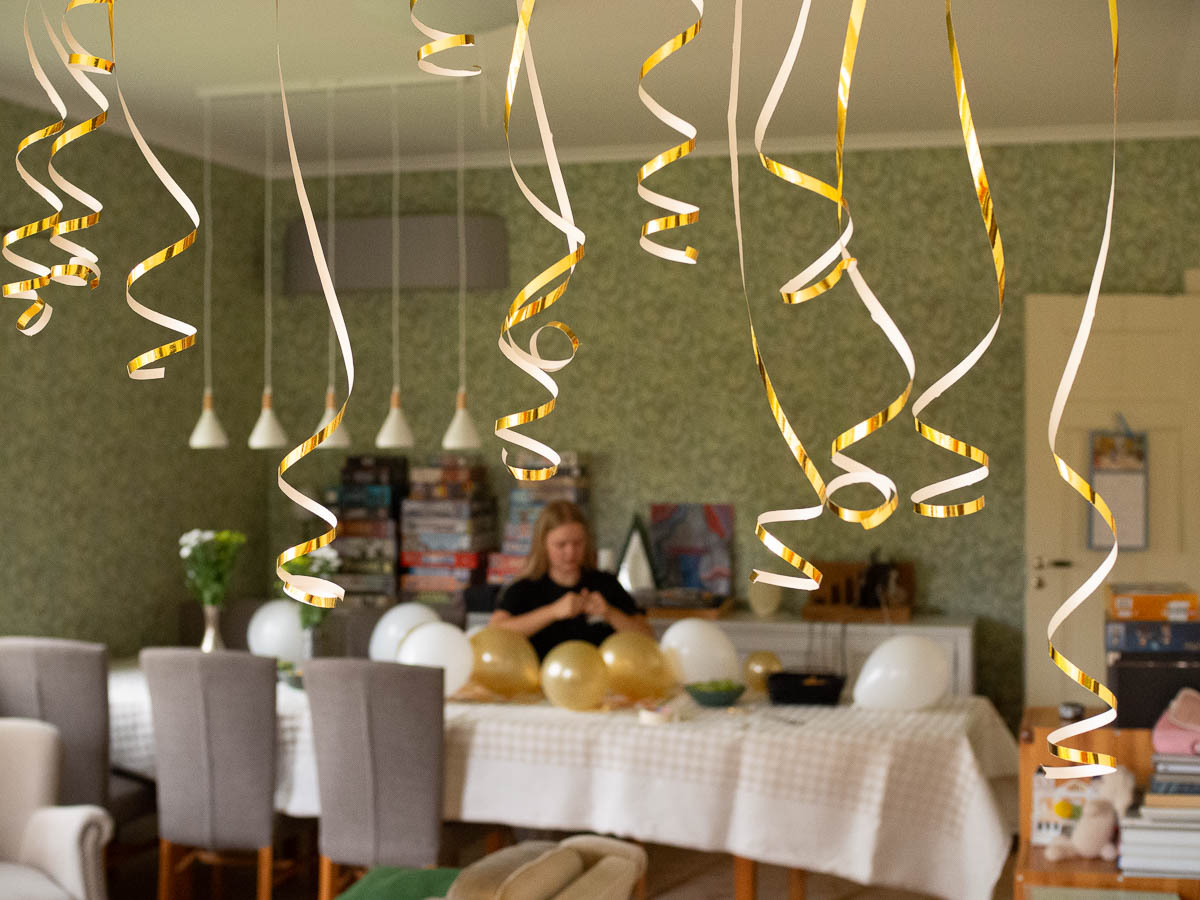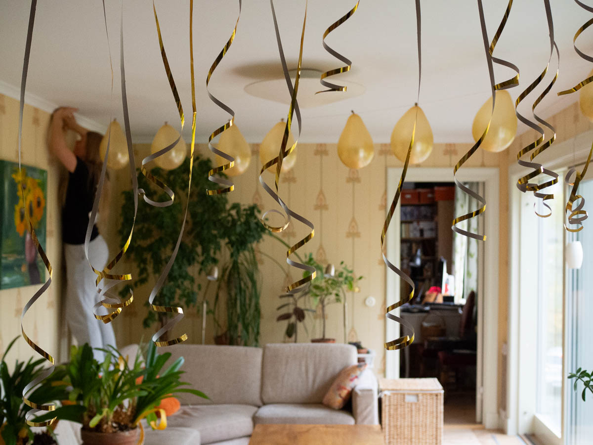 Today Ingrid decorated the house with golden balloons and serpentines.