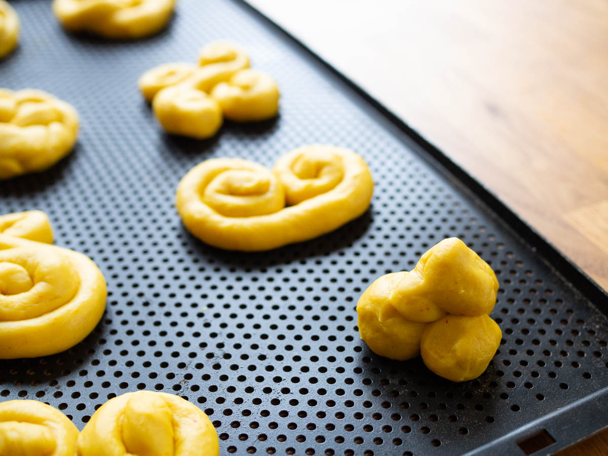 Then we baked. More lussebullar in all sorts of shapes, because after a while we all become bored with the traditional ones. There were lusse croissants and doodles and swirls and twists, and even a lusse snow lantern.