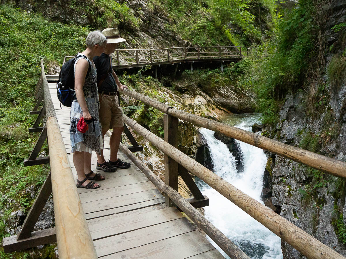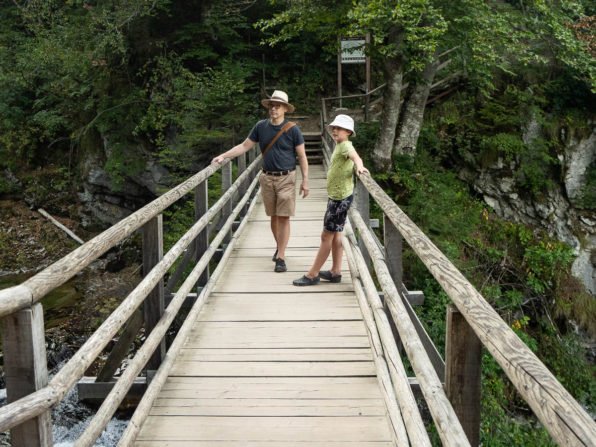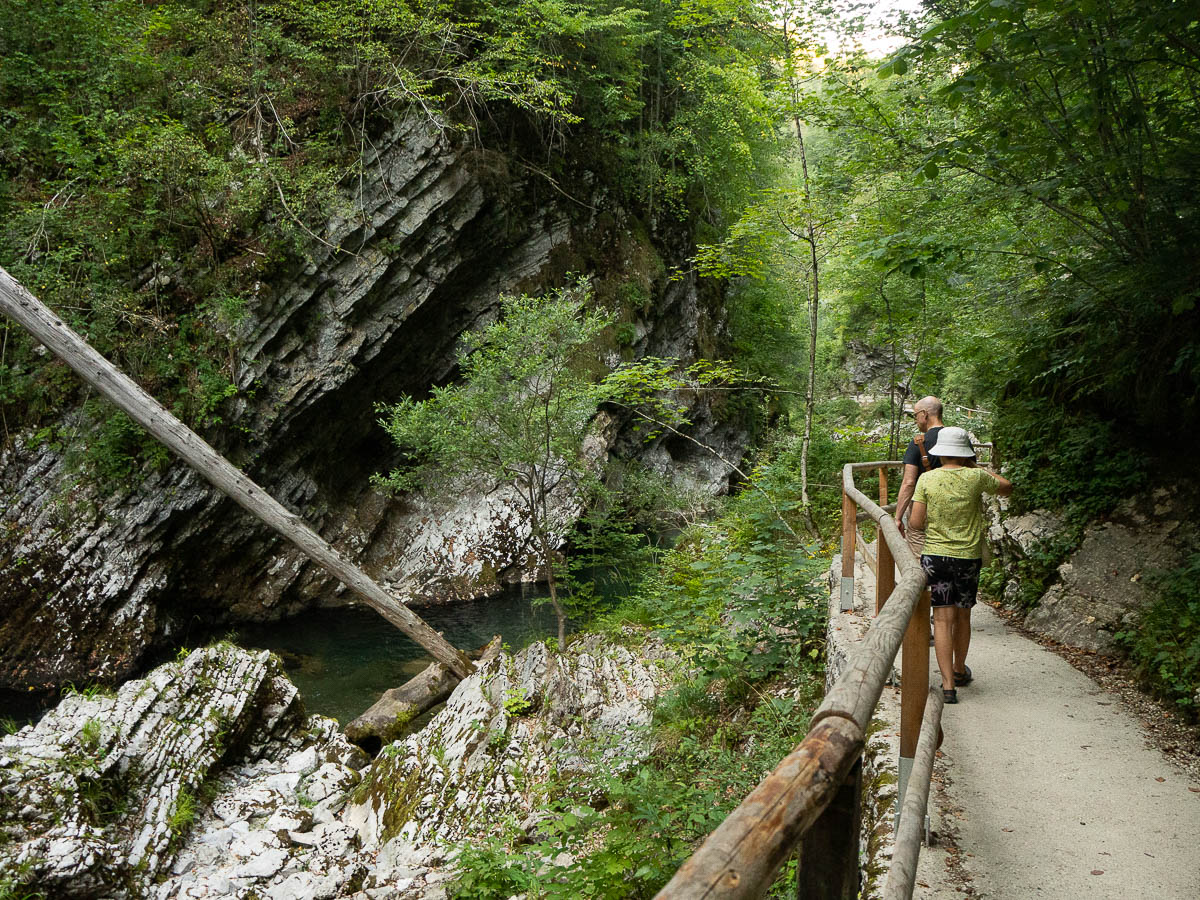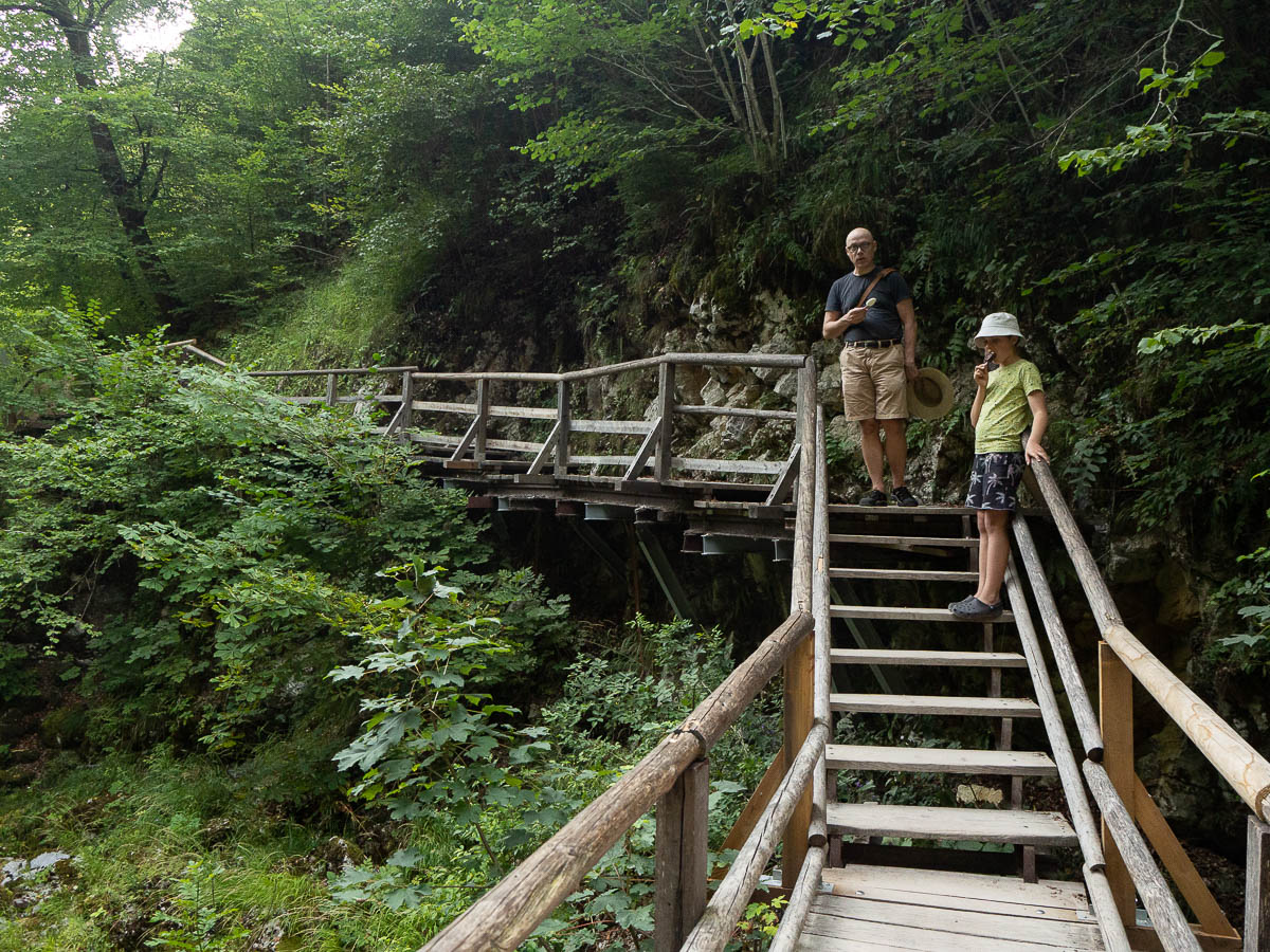 For our evening walk we went to Vintgar Gorge just outside of Ljubljana. Getting there was an adventure in and of itself, with roadworks blocking off several access routes, and half of the official parking lots closed down, and Google not aware of some of the roadworks. We spent a silly amount of time zig-zagging down narrow gravel village roads, but we got there in the end.