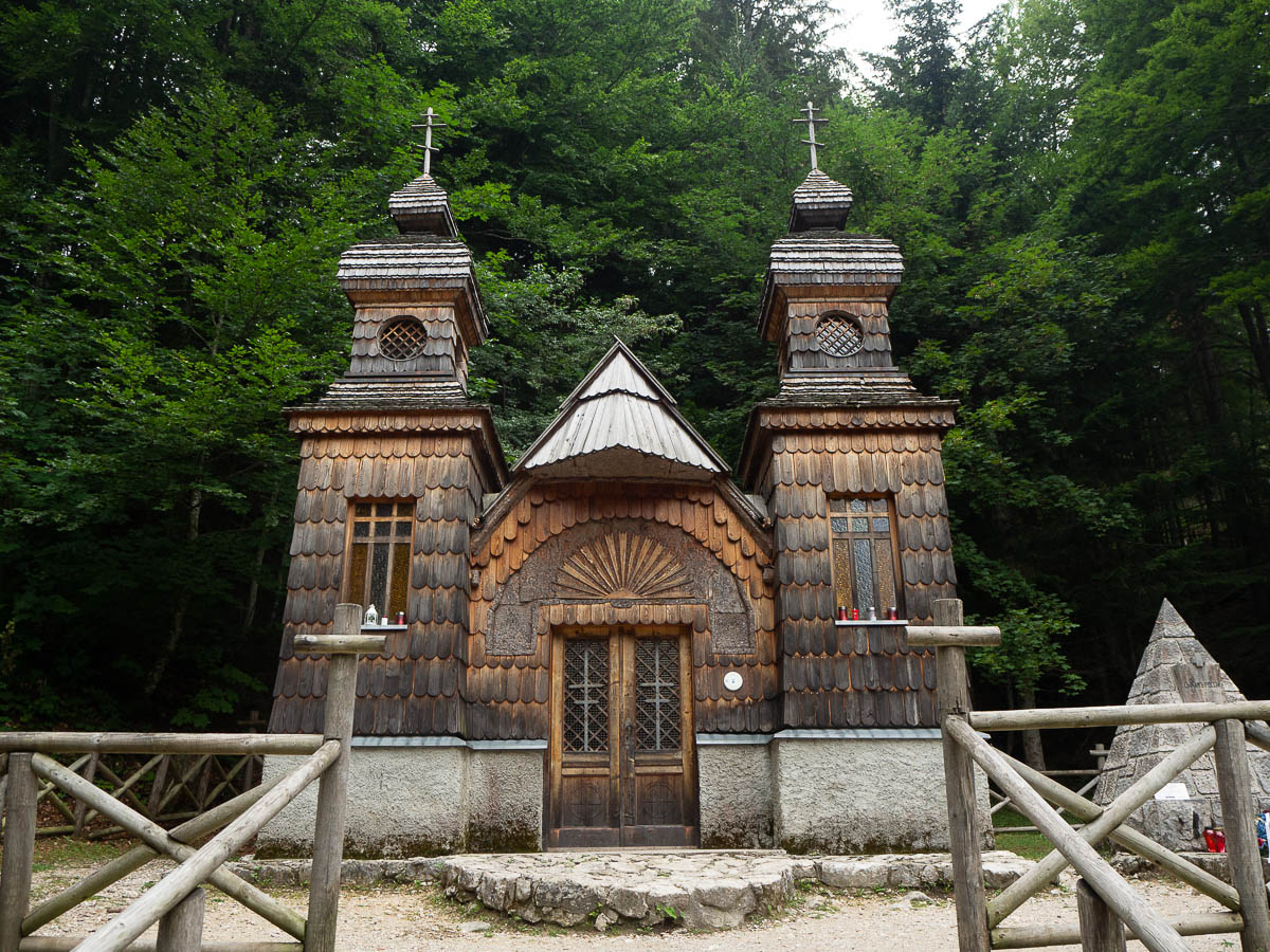 Another day, another river valley walk – from lake Jasna along the Pišnica river, to a small Russian chapel. Writing this two weeks later I realize the river valleys are beginning to blend together and I can’t remember any particular details from this hike, apart from the chapel itself. Oh, and the cows! There were free-roaming cows not just in pastures but also just climbing the rocky, forested slopes along the river, which I unfortunately didn’t catch on a photo. I’m used to seeing goats and sheep in hilly woods, but climbing cows were new to me.