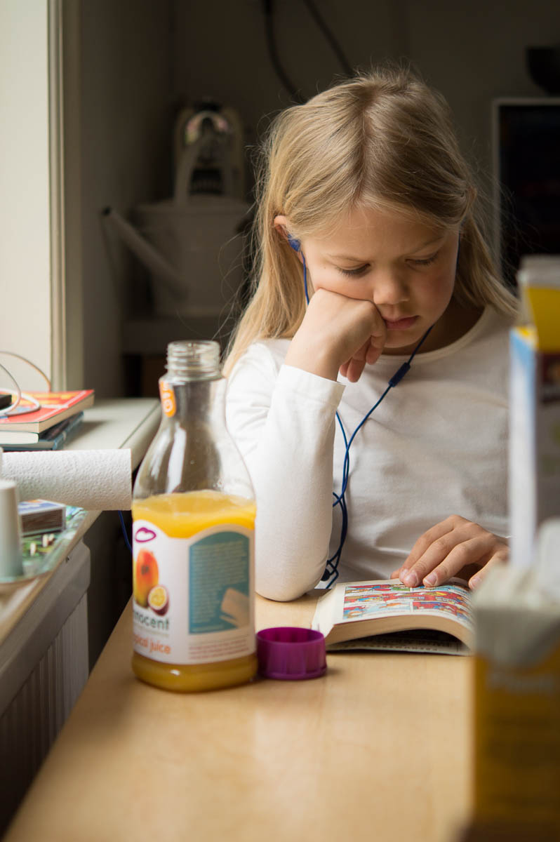 Loves reading Hunger Games (currently on book 3) and watching the movies. So much so that she reads until late evening and there’s little time left for me to read to her.