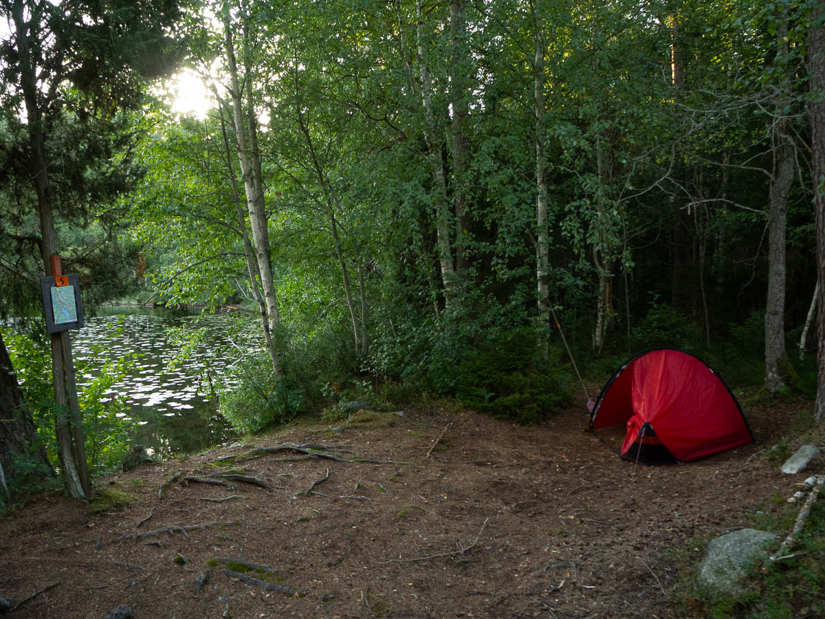 We stopped for lunch at a picnic spot just off lake Marviken, roughly at the halfway point, and made a fire to heat and cook our food.