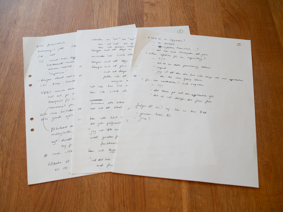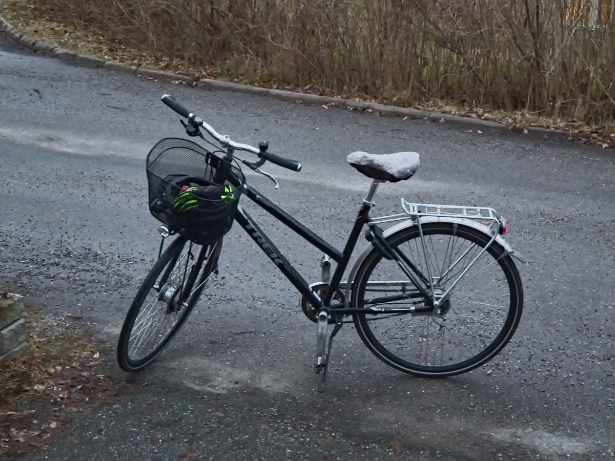 How much time with my own thoughts this gives me. It takes me roughly the same forty-five minutes to get to the office by train or by bike. By train, the trip is chopped up and full of distractions. I don’t experience it as a forty-five-minute period, but as a sequence of small stretches of time. Ten minutes to the station, wait a few minutes, find a place on the train. Read for ten minutes. Get off, get through the tangle of Stockholm central station. Repeat the above on the metro. Walk one last bit. Going by bike, in contrast, there is a lot of just… time passing while I move forward. Time to think. Or to not think.