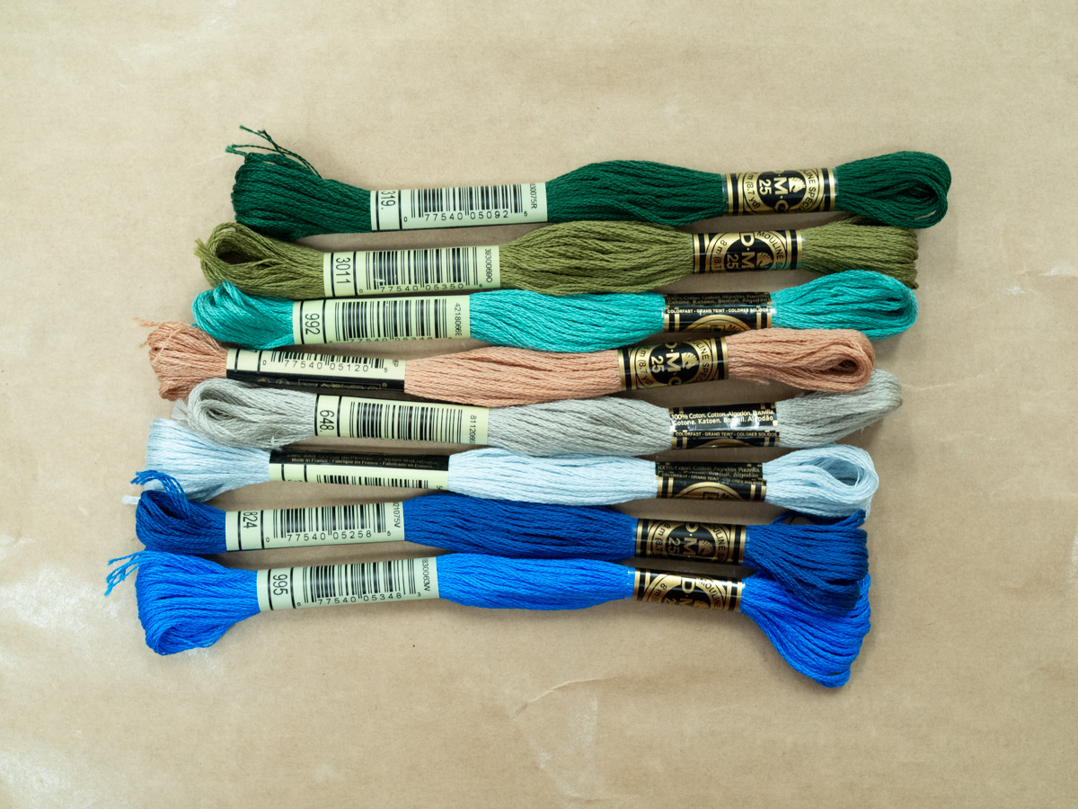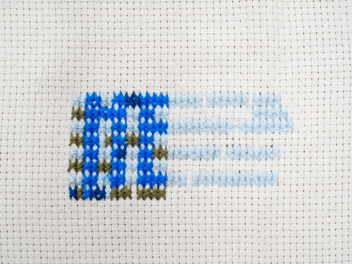 I had a piece of Aida cloth in my stash at home, which I thought would work for this. Now I’m regretting the choice. It’s a bit of a pain to work with – not very stable, and tricky for longer stitches that tend to glide in between the warp and the weft. A stiff, stable canvas would have been much easier.