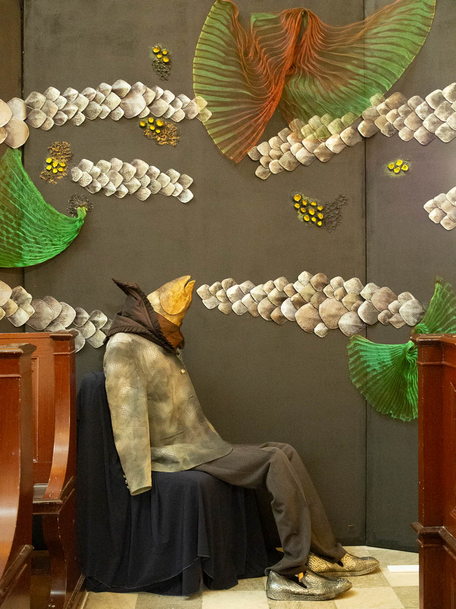 There were all the usual textile crafts – embroidery, pieces of weaving – and then suddenly a sculpture/installation thing depicting an anthropomorphic fish.