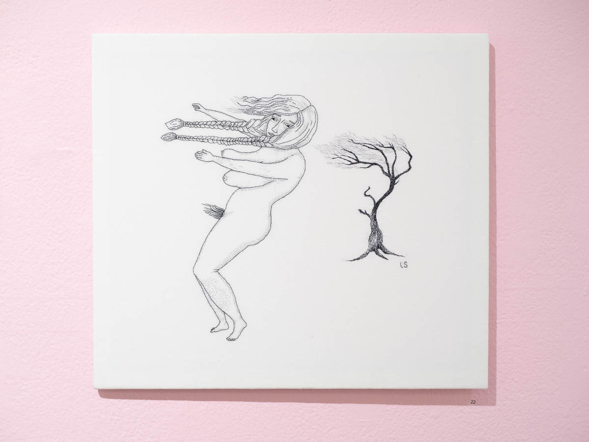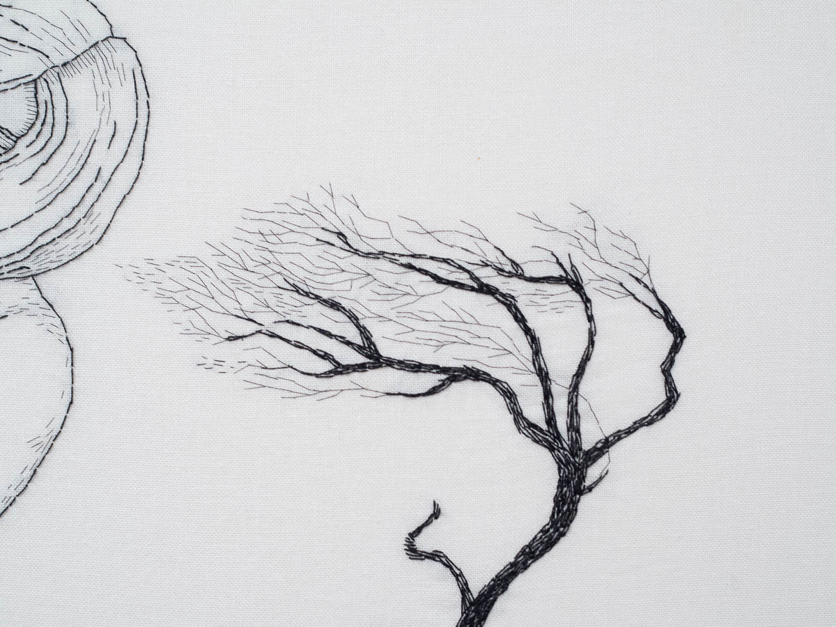 From Gustaf Vasa church I continued onwards to the shop/gallery of Konsthantverkarna where there is an exhibition of embroidered works by Lotta Sjöberg. She is an illustrator and artist, and her textile works are like drawings but in thread on fabric. Often full of wry humour, often about women’s everyday concerns.