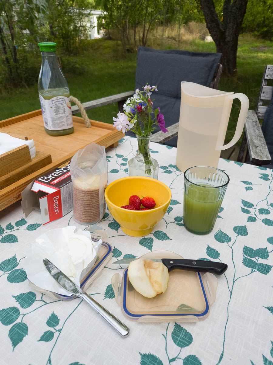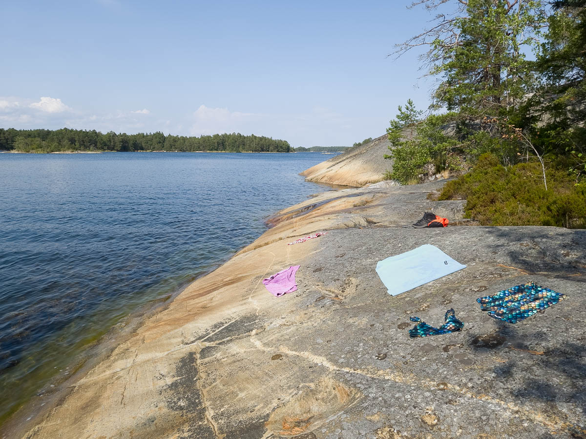 On Finnhamn we stayed at the STF hostel. Small, basic cabins again; this time without even individual toilets. Toilets, showers, etc were all in the central building. Not a problem most of the time, but inconvenient when you need to pee in the middle of night – which tends to happen after we hike in hot weather and rehydrate in the evening. On the other hand – the price included a pretty nice free breakfast buffet.