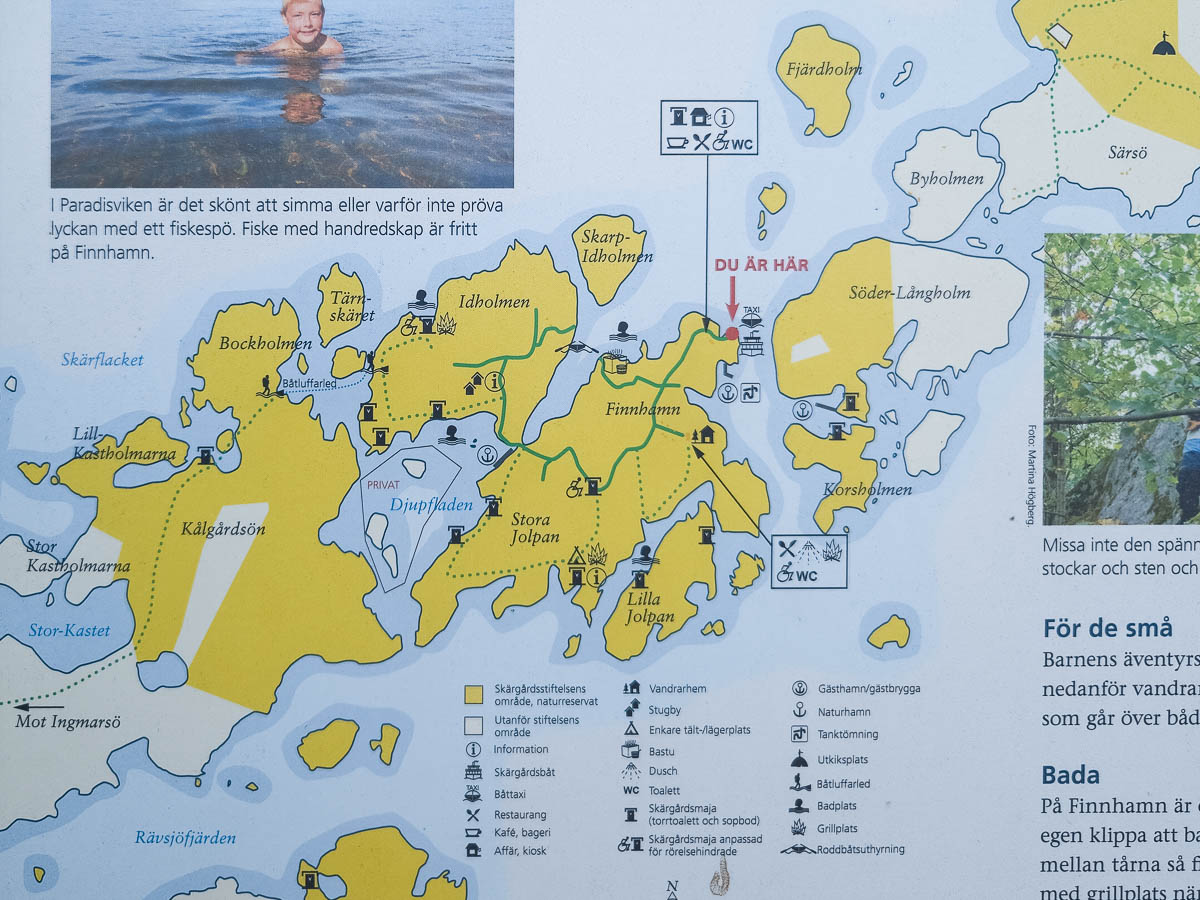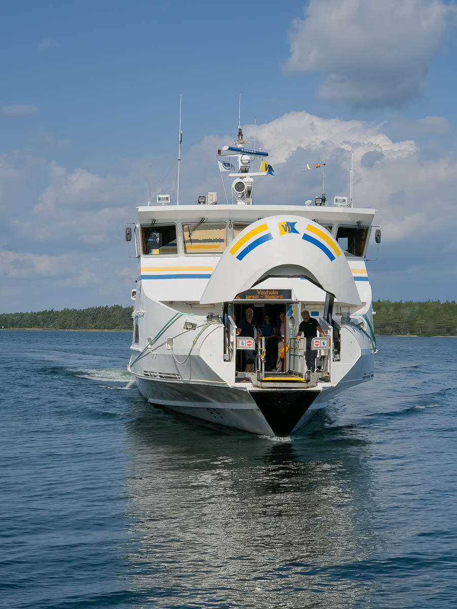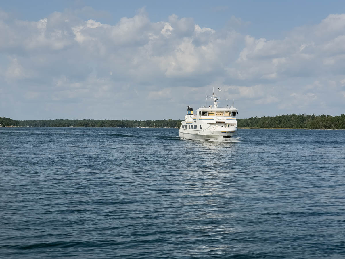 Ingmarsö, like many larger islands in this group, has several stops for the Waxholmsbolaget boats. One boat line goes around it on the north side, and another one on the south. For us today the north harbour offered a better connection to the next island on our route.