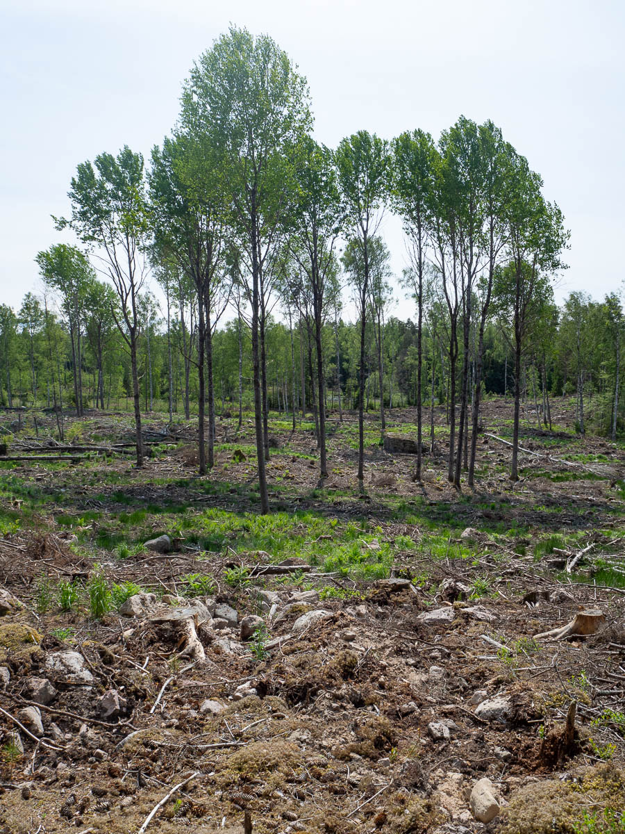 The closer I got to Katrineholm, the more clear-cut areas there were, just like on my previous hike when I approached Katrineholm from the other side. Is it an accident of timing, all the forests here reaching harvestable maturity at the same time, or something else? Unpleasant, in any case.
