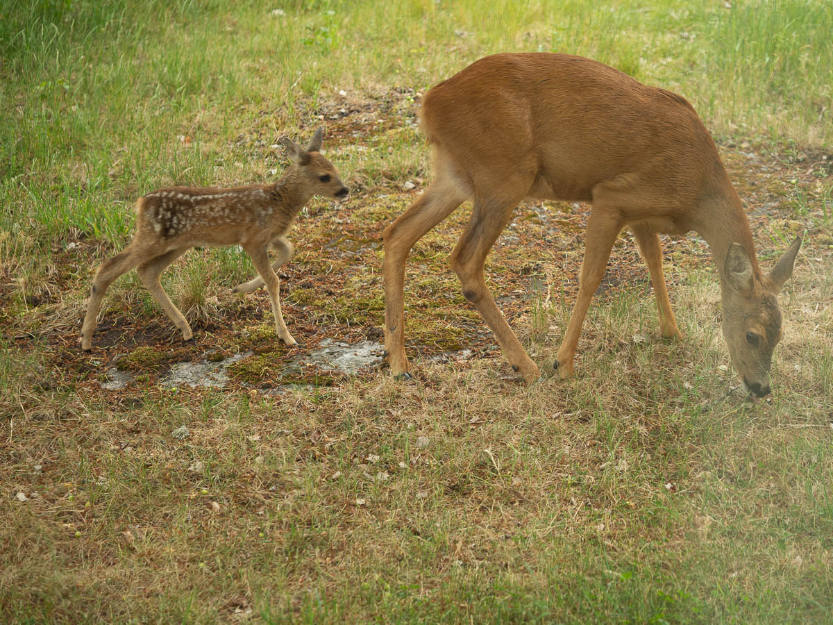 Wildlife today: Hare. Roe deer with two kids. A small herd of fallow deer. A pair of cranes of some sort, glimpsed through the trees.