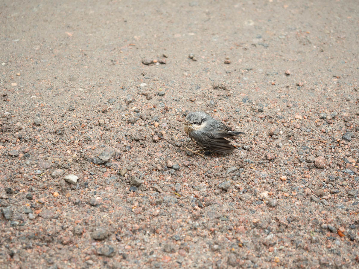 On the gravel road I saw two baby birds. Still partly baby-coloured, but I think they looked like nuthatches. Apparently old enough to leave the nest – but still so young that they were just cluelessly wandering around in the middle of the road and chirping. A dangerous way to start your life.
